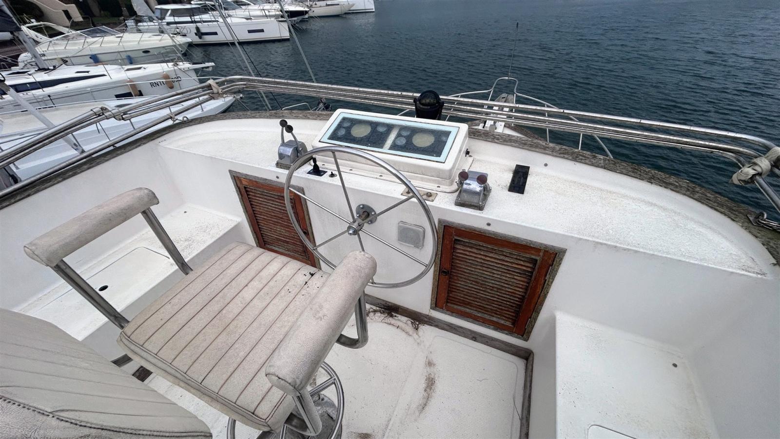 Antenna radar, Pilota automatico (Raymarine ST500), Plotter con antenna GPS, Radar (Raytheon R70), Radio VHF (portable RO 4800), Sonar, Strumenti di misura per motori.