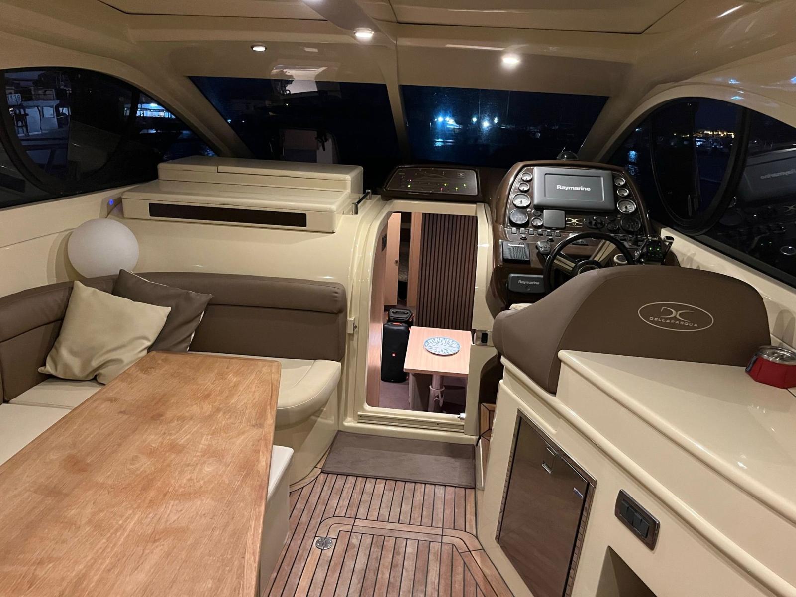 La plancia di comando, situata a dritta, offre una visibilità ottimale ed è equipaggiata con strumentazione elettronica completa (GPS, Plotter, VHF) e comandi per verricello e flap