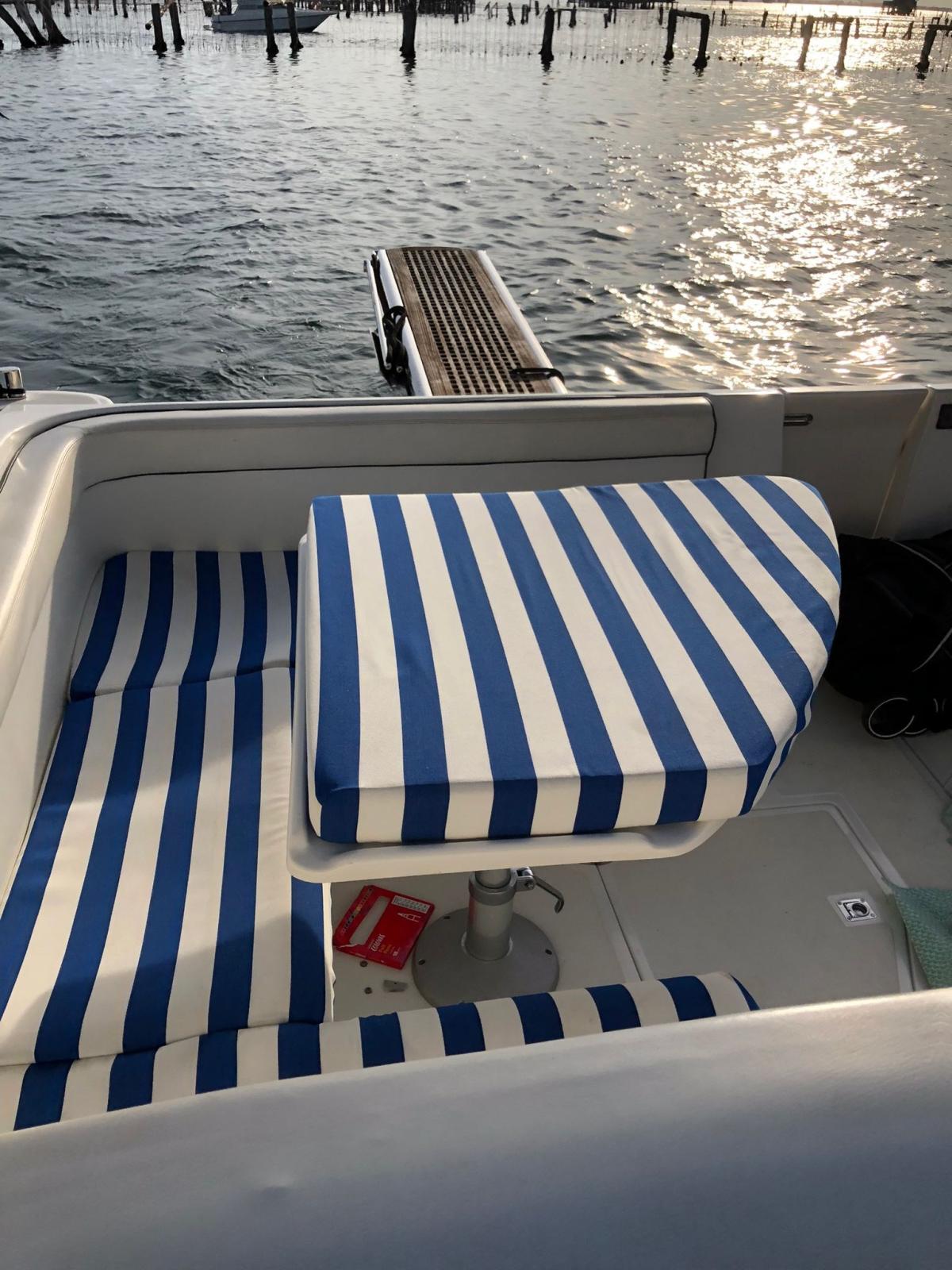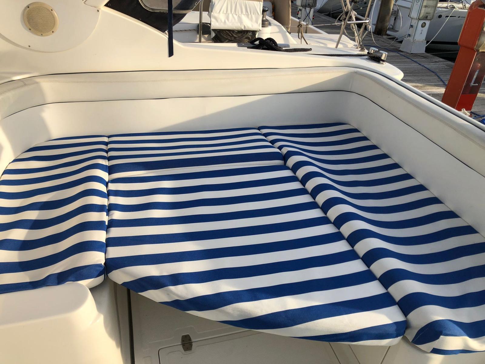 2025 nuovo teack sintetico alta qualita' nella spiaggetta - nuova tappezzeria esterna (sedute pozzetto, prendisole di poppa e prua ) con doppia tappezzeria di rivestimento "bianca in ecopelle come in origine piu' il rivestimento in materiale oleo idro " - sostituzione pompa elettrica dei 2 wc - nuovo caricabatterie - motorini Wc nuovi -