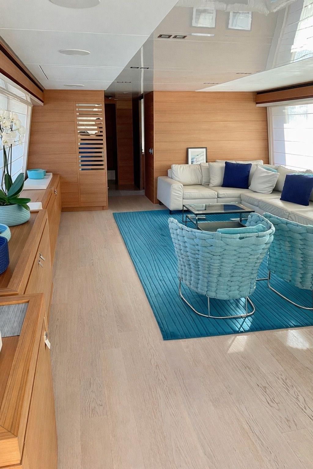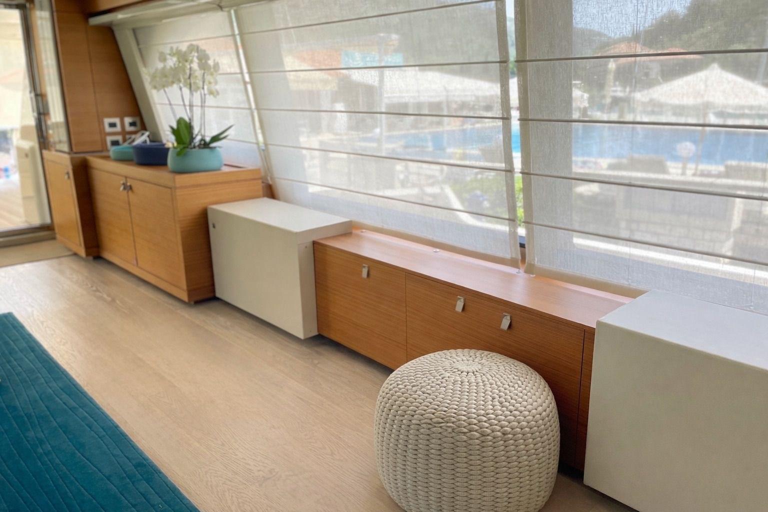 Vino frigorifero nel ponte superiore nel salone con mobili sul lato baporto