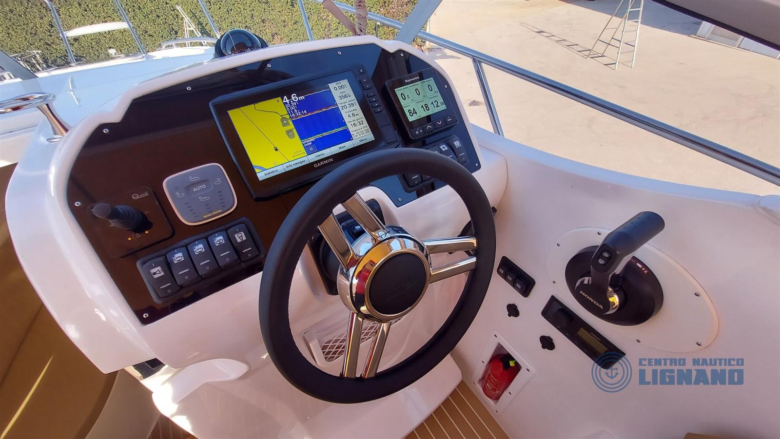 La barca ora è dotata di nuovo telo di chiusura totale colore nero. Inoltre... GPS Garmin Echomap, trasduttore eco, flaps automatrici, ELICA DI PRUA, impianto radio VHF, boiler acqua calda, ombreggianti, verricello 500 Watt, cuscino prendisole di prua, prolunga cuscino divano poppa, fornello a gas, frigo in pozzetto, impianto stereo Fusion con bluetooth e casse acustiche in pozzetto, cappottina anteriore, chiusura notte con archi in acciaio inox, plancetta di poppa in teak sintetico, armadietti aggiuntivi in cabina, molto altro!