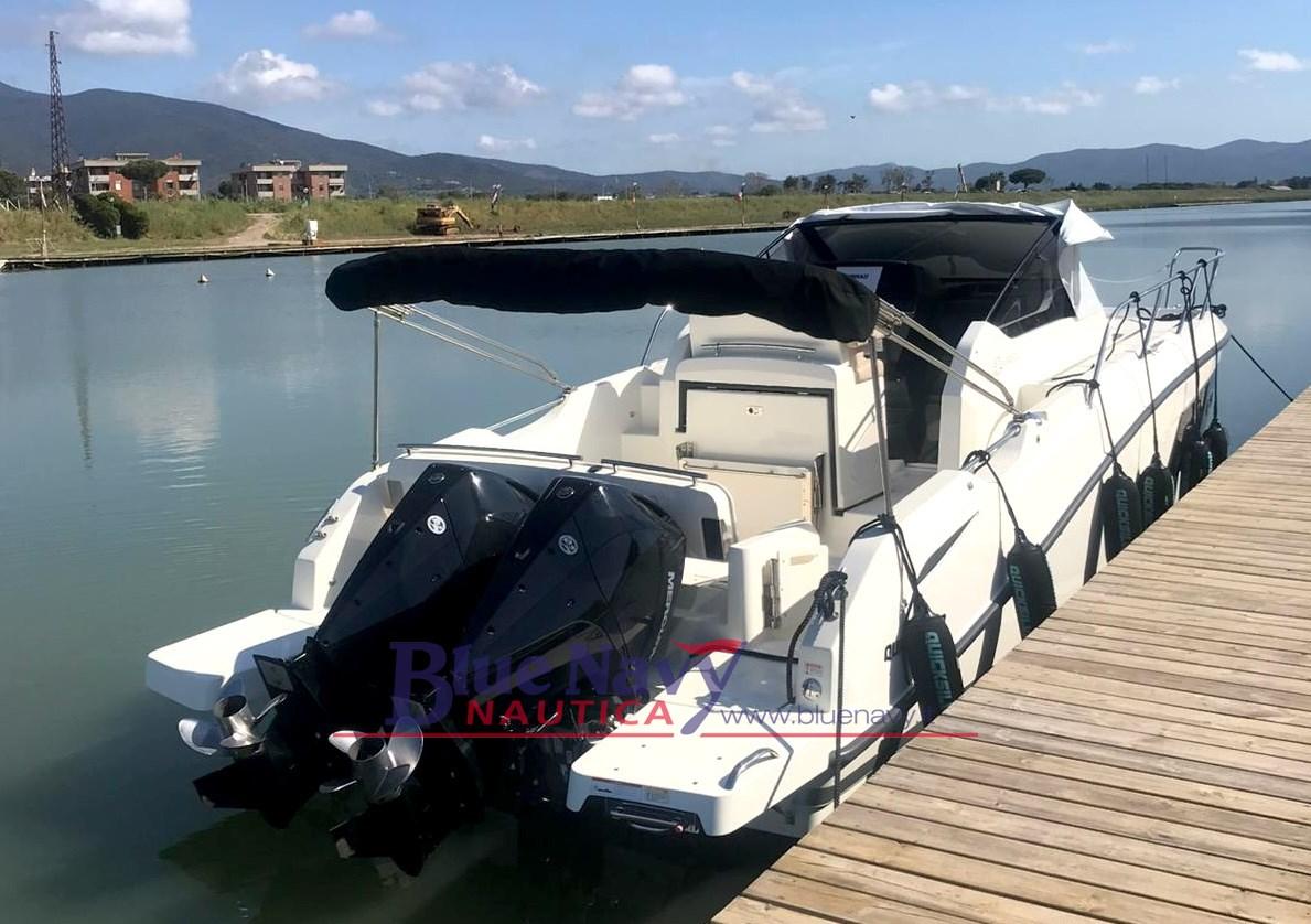 Vendesi barca usata - Quicksilver 875 Sundeck -del 2022, motorizzata con la coppia di motori Mercury 225cv V6. Oltre le dotazioni di serie è equipaggiata con Smart Pack (seduta abbattibile di destra, sedile basculante pilota , prendisole nel pozzetto, tende in cabina, frigorifero, forno a microonde, frigorifero, fornello a gpl, kit ormeggio), estensione delle plancete di poppa, verricello elettrico, presa elettrica in banchina, flap elettrici, tendalino, elica di prua, VHF Simrad. Motori tagliandati regolarmente da officina Mercury con tagliandi registrati, ore navigazione 168.