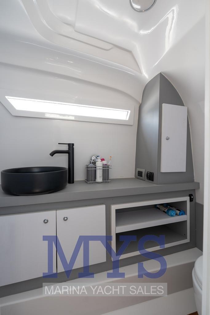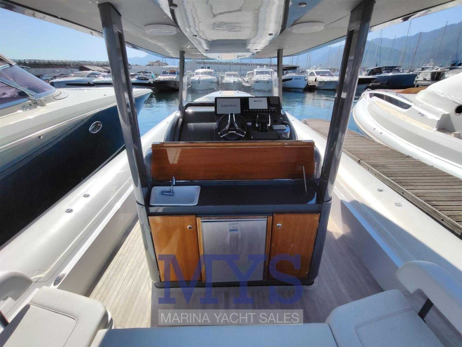 Allarme sentina, Doccia esterna (anche a prua), Lavandino nel Pozzetto, Luci di cortesia, Piattaforma, Pompa di Scarico del Serbatoio Acque Reflue, Pompa di sentina automatica, Pozzetto Teak, Presa 220V banchina, Salpa Ancore Elettrico, Tavolo pozzetto, Tromba, T-Top.