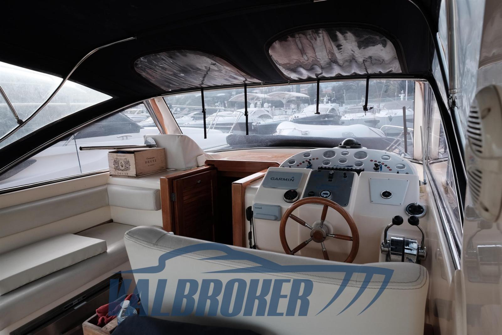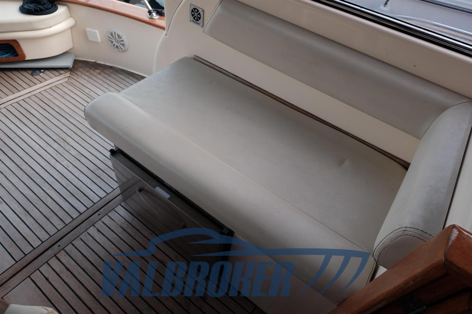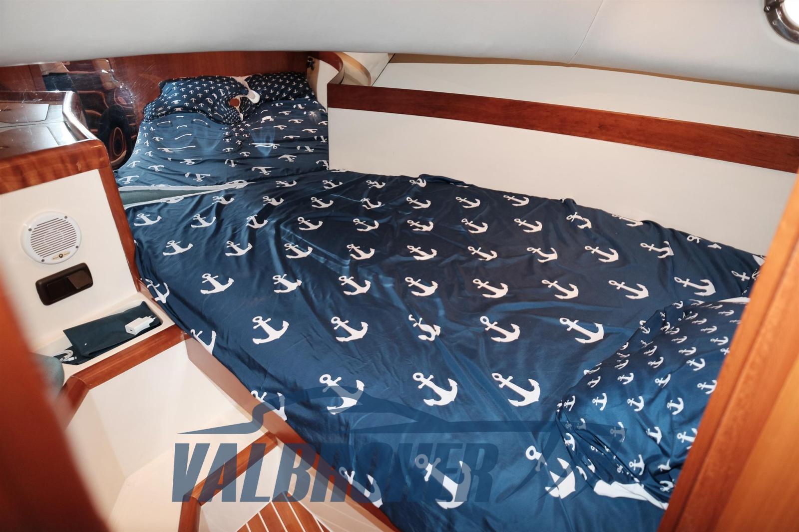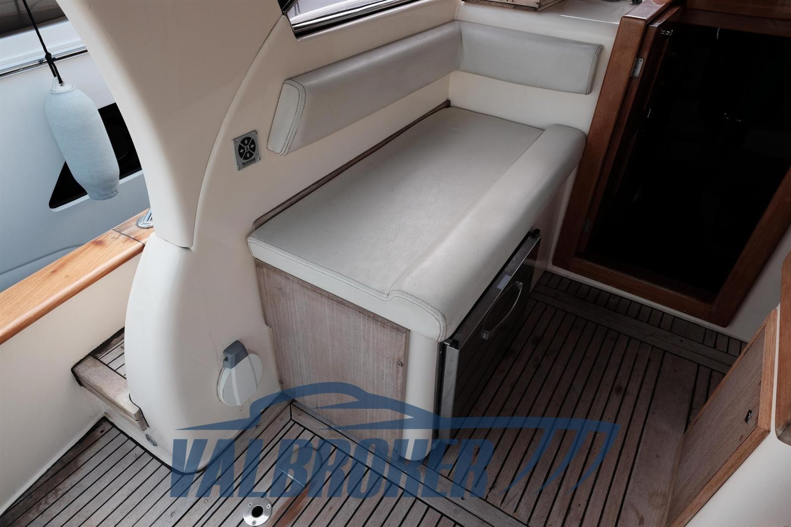 Imbarcazione in classico stile mediterraneo, Mimi Libeccio 11, Motori 2x300HP VM MD 706 LH, visibile in Costa Azzurra. Cabina a prua con porta, cucina e dinette trasformabile in letto matrimoniale. Bagno con doccia. Ampio pozzetto.