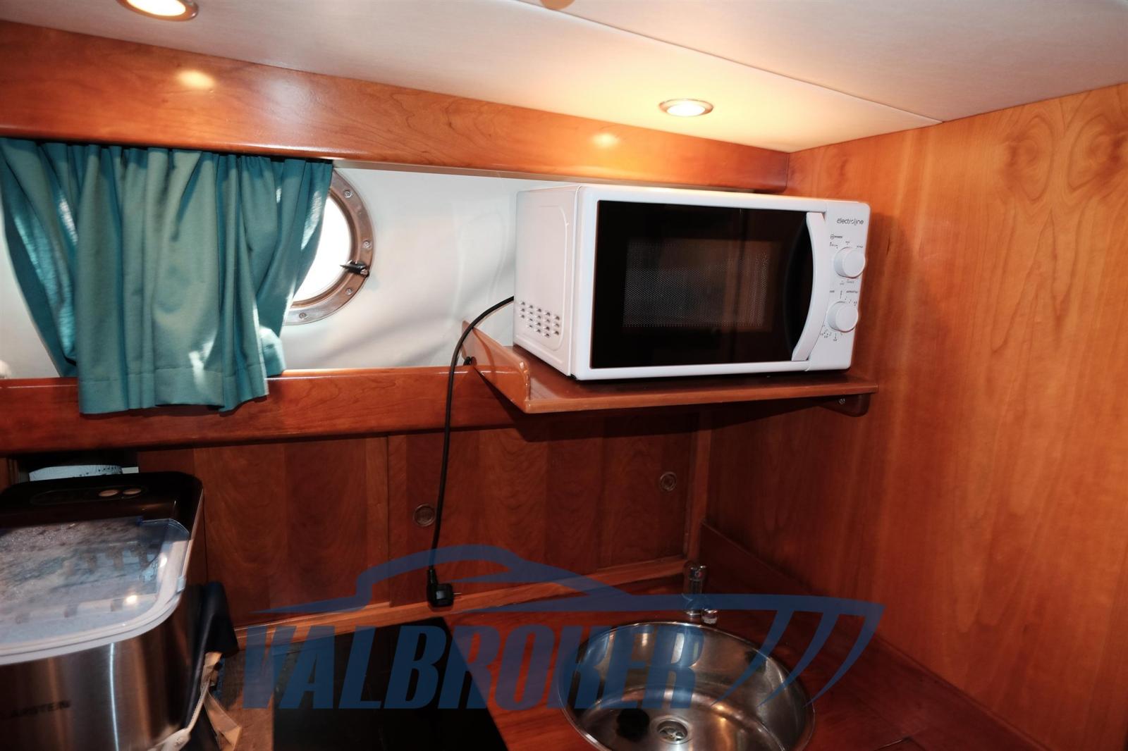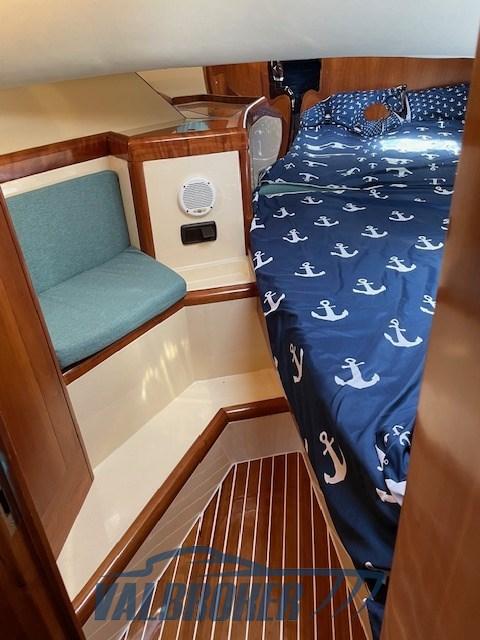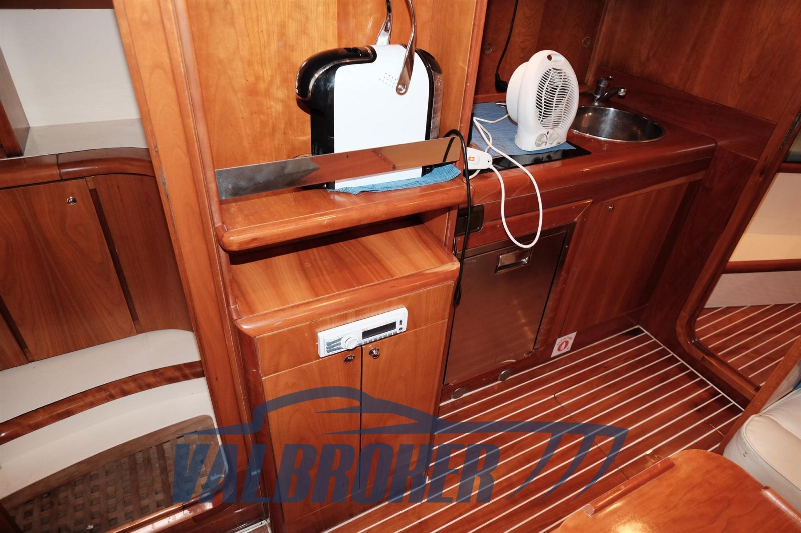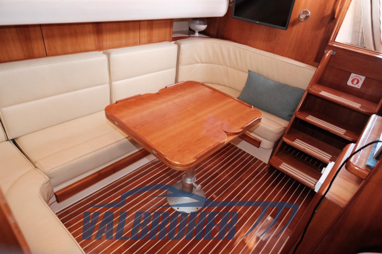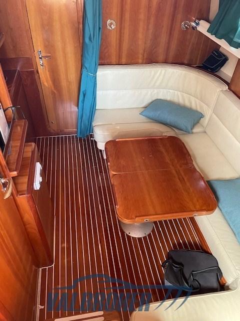 Imbarcazione in classico stile mediterraneo, Mimi Libeccio 11, Motori 2x300HP VM MD 706 LH, visibile in Costa Azzurra. Cabina a prua con porta, cucina e dinette trasformabile in letto matrimoniale. Bagno con doccia. Ampio pozzetto.