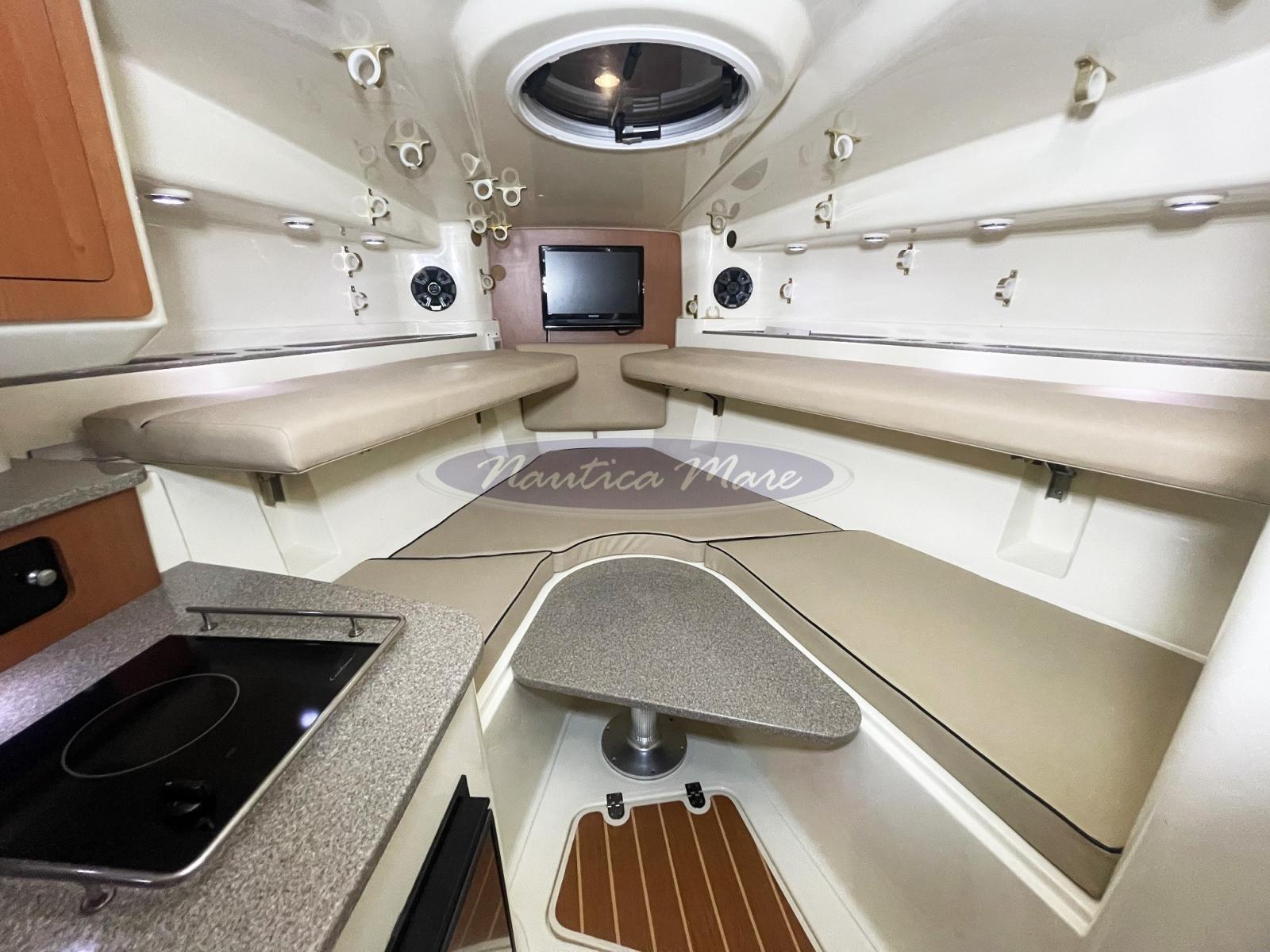 Cuscineria completa, Cuscineria di poppa (compresa seduta a scomparsa a poppa e poggiagambe perimetrale nel pozzetto), Cuscineria di prua, Cuscineria Pozzetto, Teli chiusura T-Top (teli di chiusura hard-top), Telo copriconsolle, Tendalino (parasole nel pozzetto con pali inox).