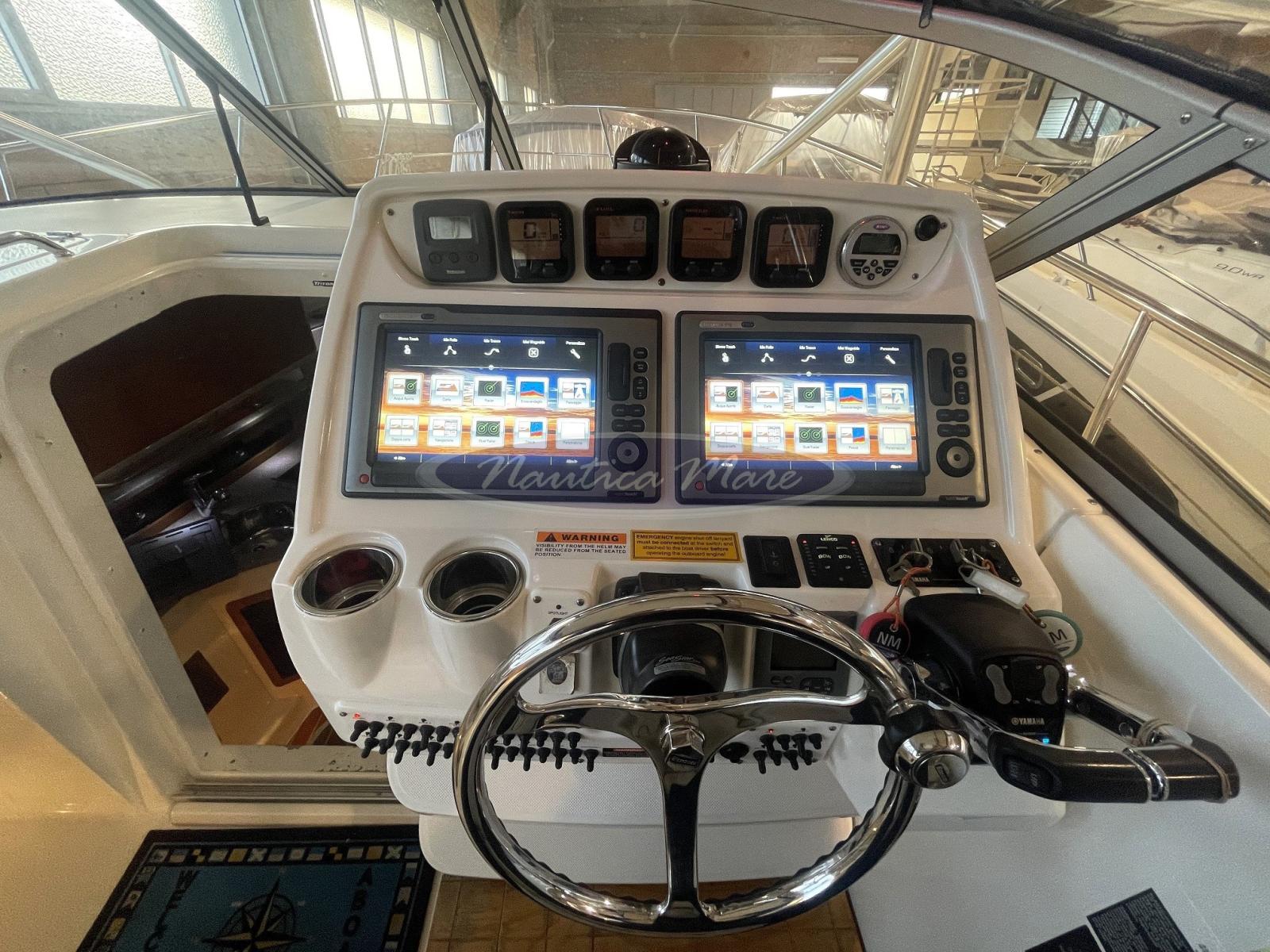 Natante, non immatricolato, questo Triton Boats 301 XD Express ha davvero tutto quello che serve! La costruzione americana, da sempre sinonimo di grande qualità, è la garanzia di avere a che fare con una macchina da pesca e da diporto senza eguali. Il layout del pozzetto è pulito, funzionale e pensato per il pescatore ed il diportista più esigente. Gli spazi di stivaggio a bordo sono abbondanti (sia in coperta che sotto) e facilmente accessibili. Nell'ampio pozzetto troviamo tutto a portata di mano, compresa la vasca del vivo e del pescato. Anche sottocoperta gli spazi generosi e confortevoli offrono tutto il necessario per una piacevole permanenza a bordo. E quando si tratta di lunghe navigazioni, il 301 XD sfrutta al meglio la sua carena a V profonda, la potenza dei 600 hp Yamaha e la grande autonomia di navigazione che vi consentirà di raggiungere il pesce (o le spiagge) in modo rapido e confortevole. La zona della timoneria è protetta da un robusto hard-top in vetroresina ed alluminio con chiusura perimetrale in tela e trasparente per un utilizzo ideale anche fuori stagione o in condizioni meteo non ottimali anche in piena estate. A prua un grande prendisole dona soddisfazione agli amanti della tintarella mentre i pescatori ed i più sportivi potranno dilettarsi nelle varie attività di bordo. Questa barca è inoltre dotata di una completissima elettronica di navigazione (compreso Radar e Pilota Automatico per le traversate più lunghe ed impegnative) mentre il comfort è assicurato dall'impianto di climatizzazione caldo-freddo, dal frigorifero interno, dal microonde e dalla cucina con piastra elettrica.