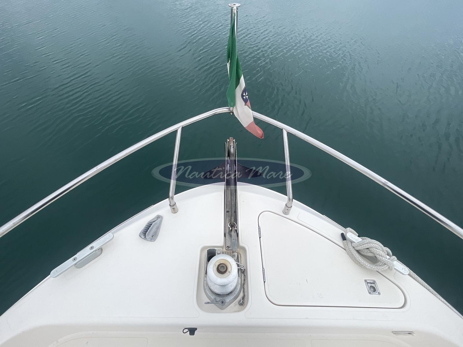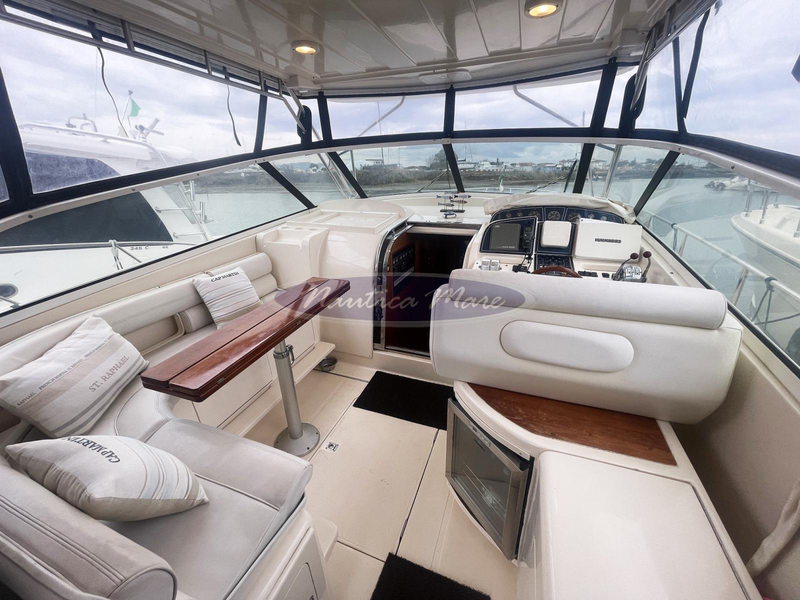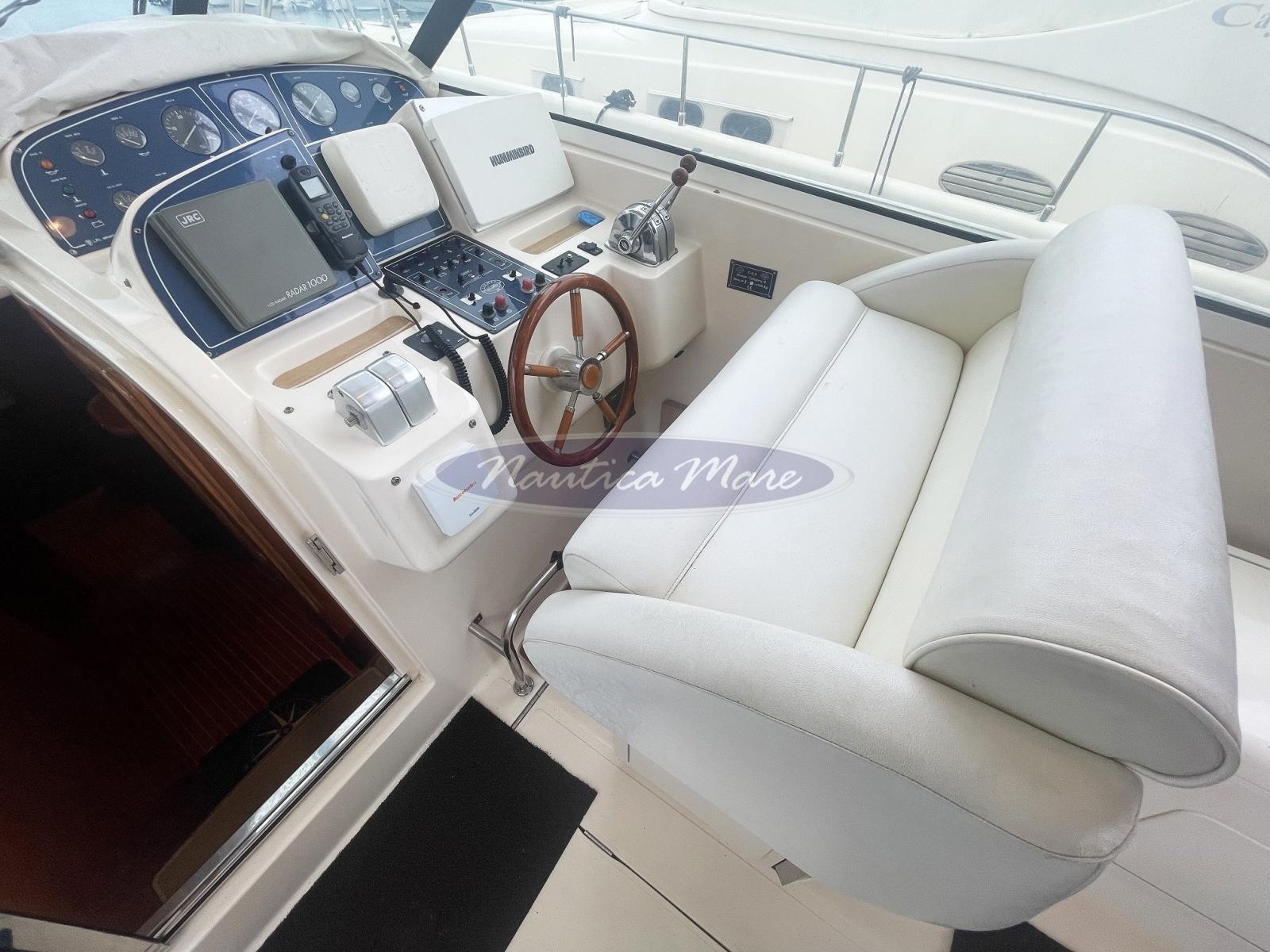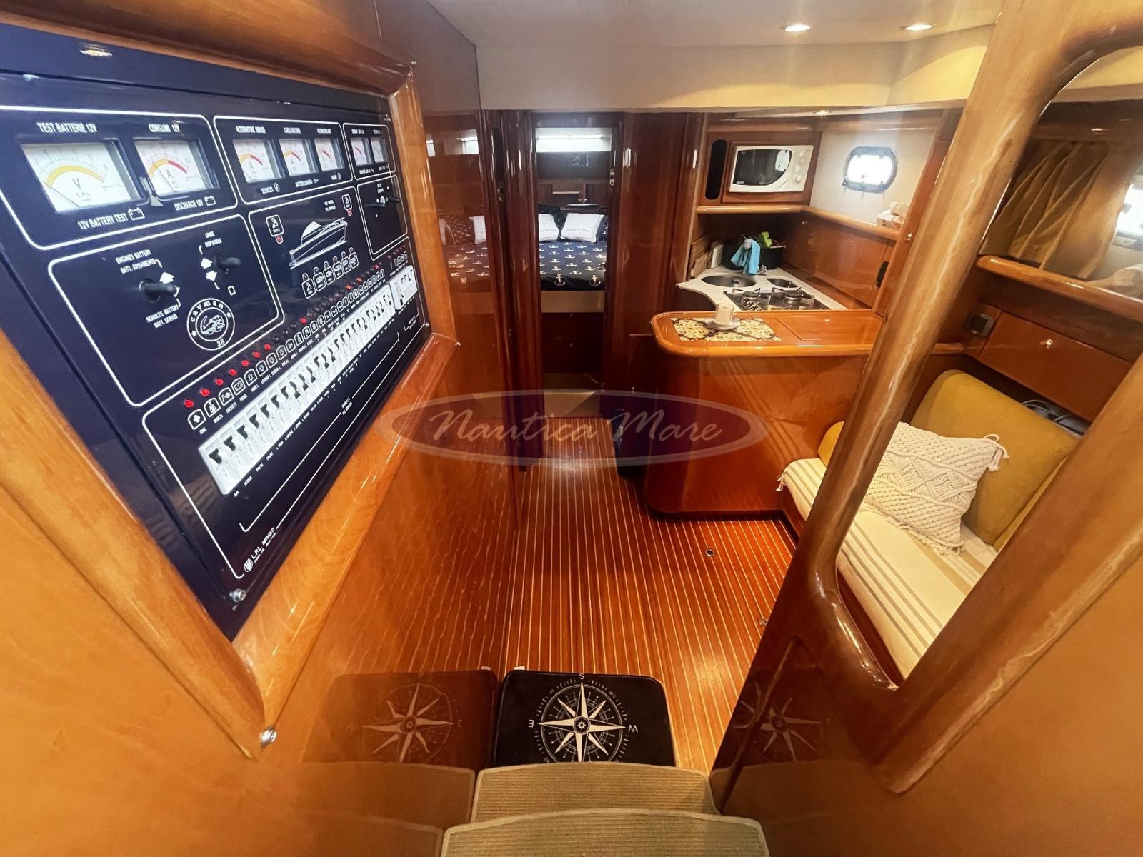 Angolo barra (sul pilota automatico), Antenna radar, Ecoscandaglio (Furuno), GPS (Humminbird), Plotter con antenna GPS, Quadro comandi (completo con leve telecomando motori meccaniche Morse), Radar (JRC LCD Radar 1000), Radio VHF (Raymarine), Sedile Copilota (poltrona di comando doppia).