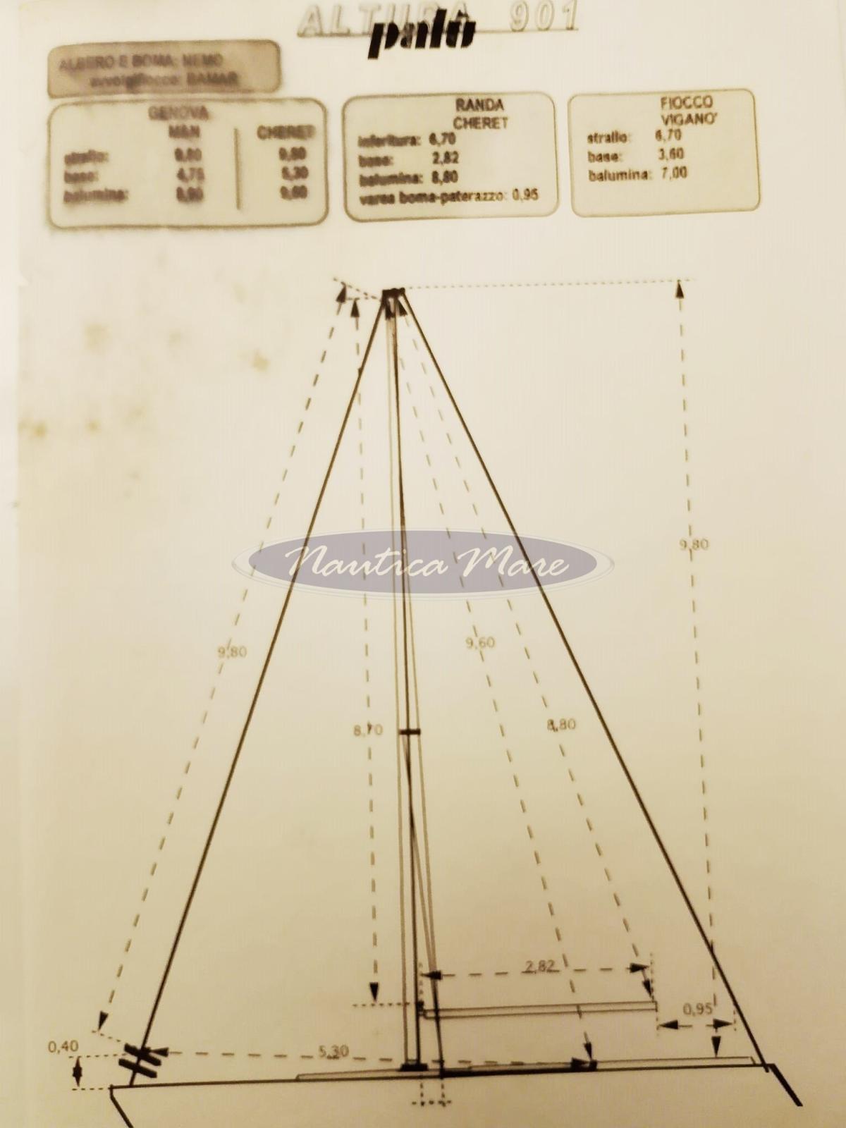 Armo Sloop ; Randa Semi nuova ; Vele di prua: Genoa semi nuovo con rollafiocco Bamar ; 6 Winch + copri winch di colore azzurro ; Lazy Jack ; Lazy bag ; Gennaker con calza