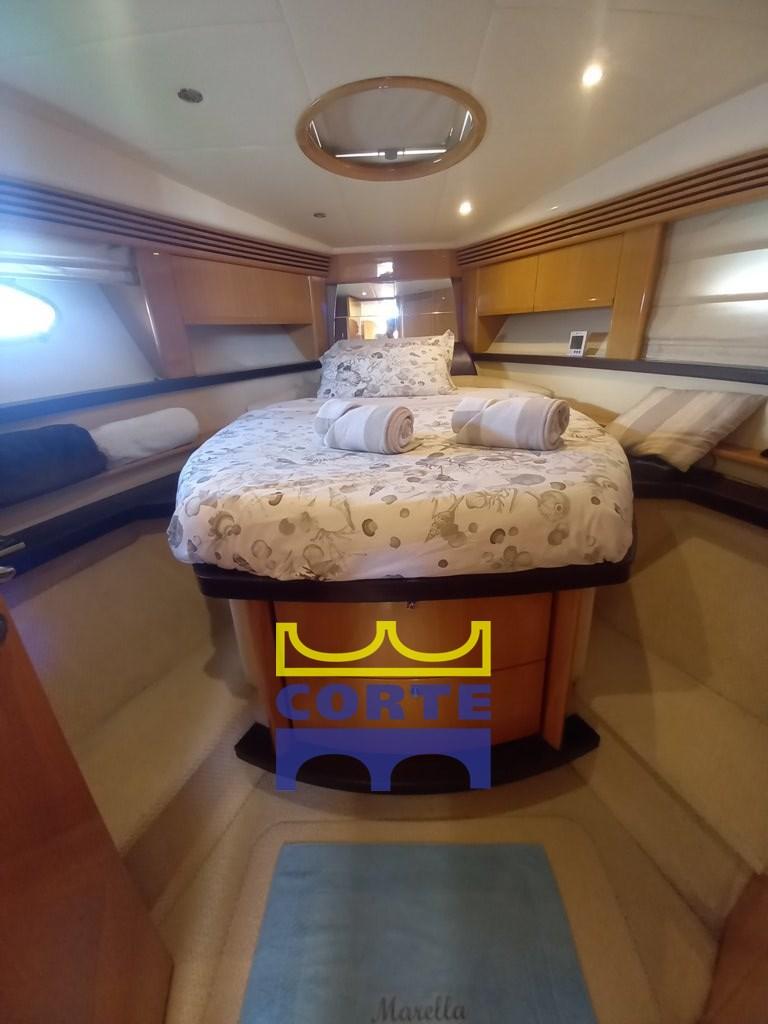 Scafo bianco, garage tender, 2 cabine matrimoniali, prendisole poppa e prua.