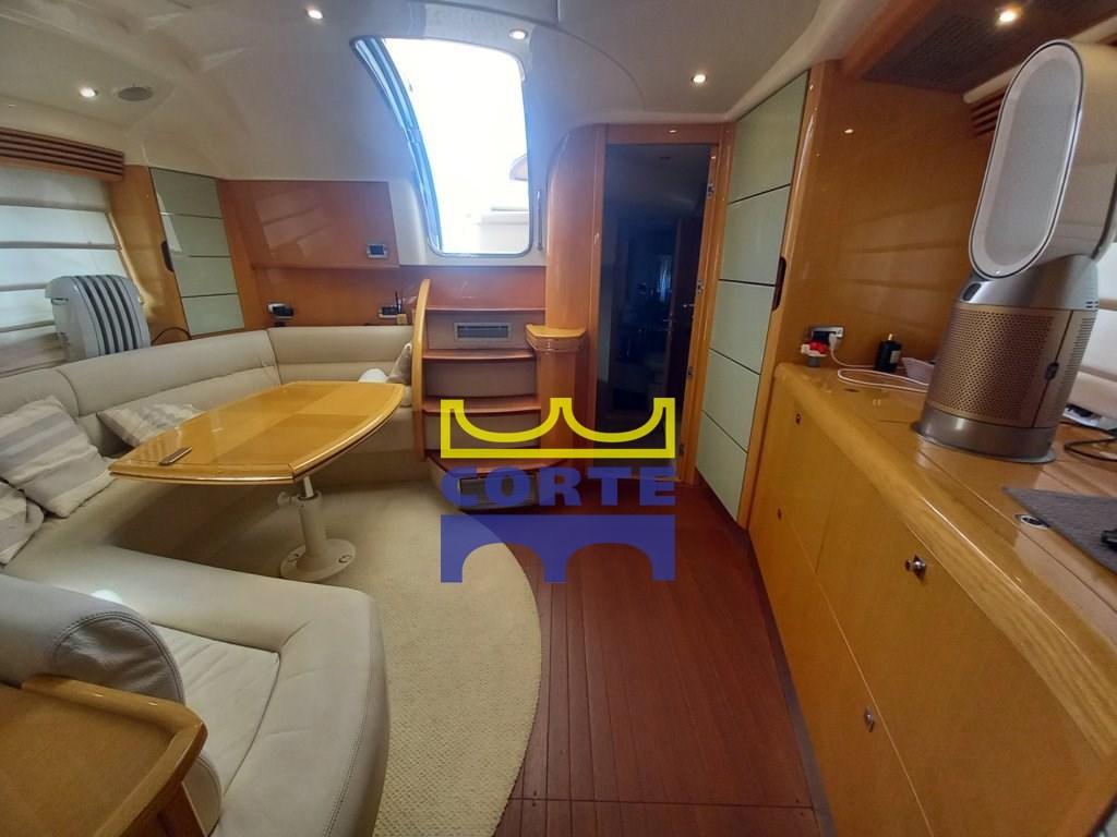 Allarme motore, Allarme sentina, Autoclave, Doccia esterna, Faro orientabile, Flap idraulici, Garage per tender, Lavandino nel Pozzetto, Passerella (elettroidraulica a scomparsa), Piattaforma (di poppa in teak), Pompa di sentina automatica, Porta ingresso, Pozzetto Teak, Presa 220V banchina, Salpa Ancore Elettrico, Scaletta da bagno, Tavolo pozzetto, Tromba.