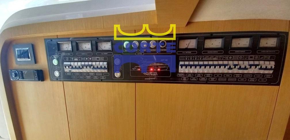 Antenna radar, Comando motori elettronico, Display, Ecoscandaglio (integrato Garmin), GPS (Garmin touch screen), Joystick (yacht controller), Pilota automatico (Garmin), Radar (Garmin).