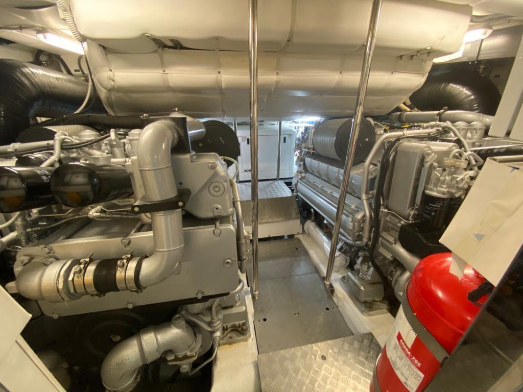 Allarme motore, Allarme sentina, Alternatore, Autoclave, 8 Batterie, Camminamenti laterali in teak, Doccia esterna, Flap idraulici, Garage per tender, Impianto antincendio, Indicatori Flaps, Luci di cortesia, Luci subacquee, Parabordi, Passerella, Piattaforma, Pompa di sentina automatica, Pompa di sentina manuale, Ponte in teak, Porta ingresso, Pozzetto Teak, Presa 220V banchina, Presa acqua banchina, Salpa Ancore Idraulico, Scaletta da bagno, 2 Stabilizzatori (SEAKEEPER), Tender, Tromba, Winch tonneggio di poppa, Winch tonneggio di prua.