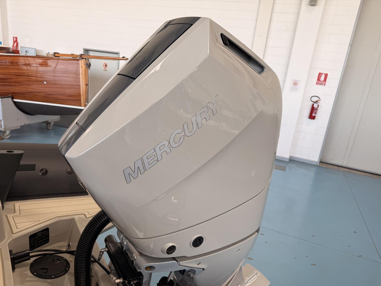 Il potente motore Mercury da 400 hp conferisce al gommone un carattere aggressivo e prestazioni brillanti, mentre l’elica di prua garantisce grande maneggevolezza nelle manovre, facilitando l’ormeggio e gli spostamenti anche negli spazi più ristretti.