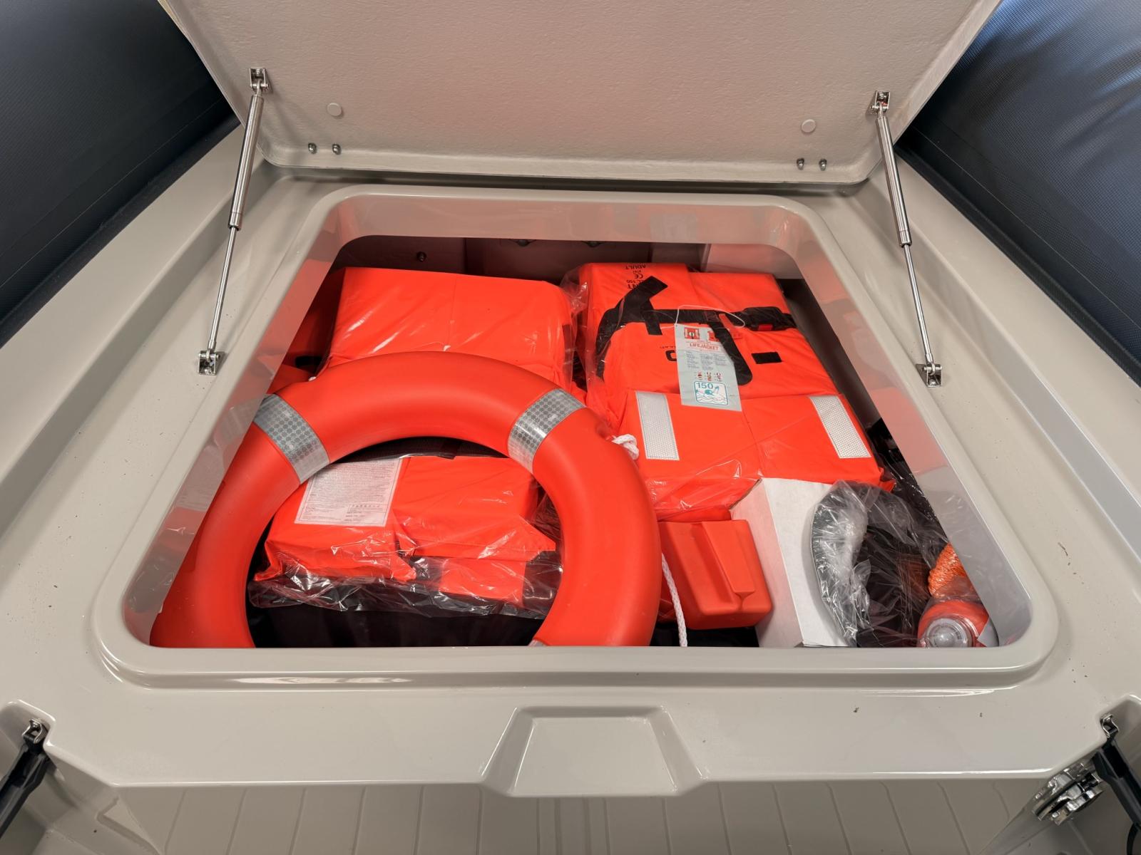 L’imbarcazione è configurata quasi full optional e offre tutto ciò che serve per trascorrere una piacevole giornata in mare. Tra le dotazioni troviamo il salpa ancora elettrico, il frigorifero integrato nel pozzetto e le fasce antisdrucciolo sui tubolari, progettate per aumentare la sicurezza e prevenire lo scivolamento durante le fasi di imbarco o di movimento a bordo.