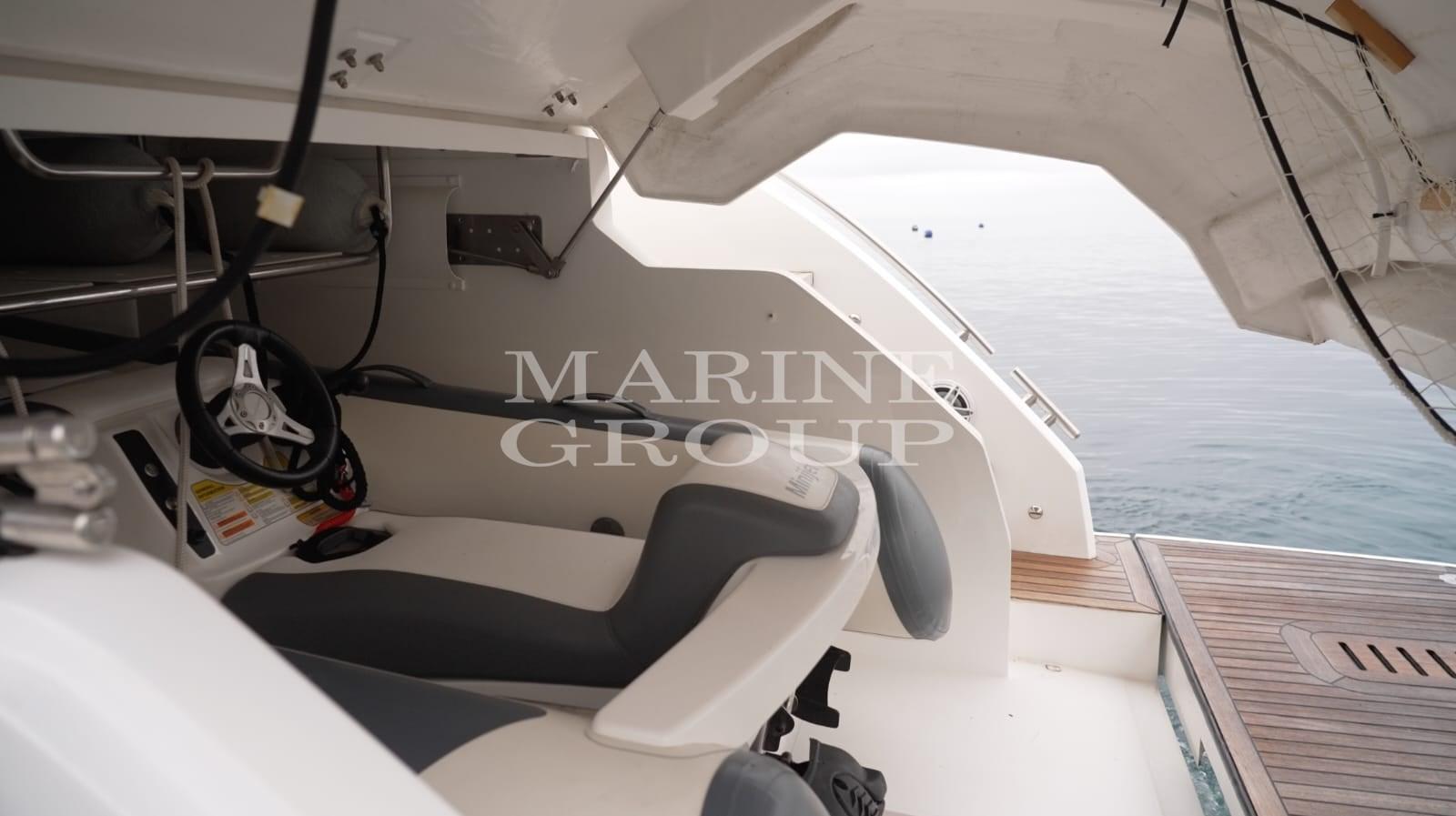 Doccia esterna, Garage per tender, Hard top, Lavandino nel Pozzetto, Luci di cortesia, Luci subacquee, Passerella (Elettro idraulica), Piattaforma (Affondante), Pozzetto Teak, Presa 220V banchina, Presa acqua banchina, Salpa Ancore Elettrico, Scaletta da bagno, Stabilizzatori (Seakeeper), Tavolo pozzetto, Tavolo Salone Abbattibile, Tromba.