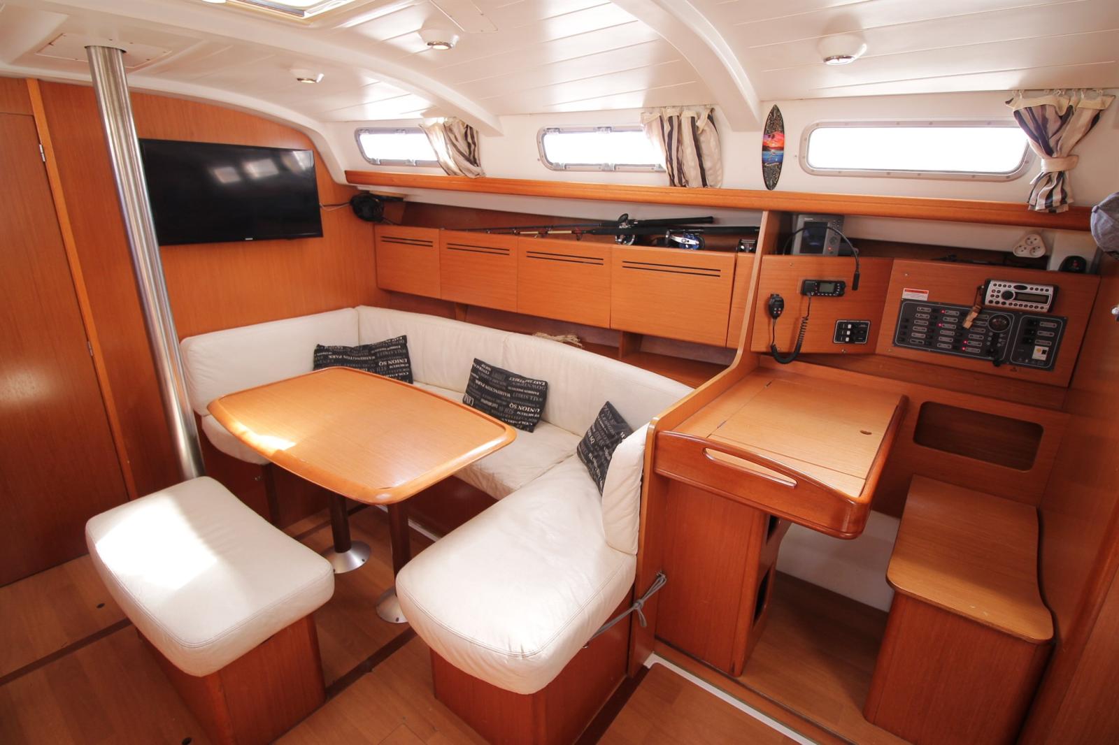 L'azienda PHILIPPE PLAISANCE – barche a vela 100% usate è lieta di offrirvi una BENETEAU CYCLADES 43.3 in versione 3 cabine / 3 bagni. Questa barca a vela non è mai stata affittata e ha reso felici i suoi proprietari per 9 anni. Ingombrante, molto solido e con molta capacità di stoccaggio, questa CYCLADES è adeguatamente seguita e ben equipaggiata: Codice 0, elica FLEXOFOLD, randa a battuta completa, rete NMEA 2000 con GPS Garmin, AIS (trasmissione/ricezione), 750 Ah di batterie AGM, nuovo tetto, EPIRB, gommone gonfiabile a pavimento, unità di acqua e refrigerazione sostituite, motore completamente cingolato, 100% degli scafi passanti sostituiti nel 2022. Ti seducerà con i suoi volumi, il comfort e la facilità d'uso. Manovrabilità e spazio dei porti possibili.
