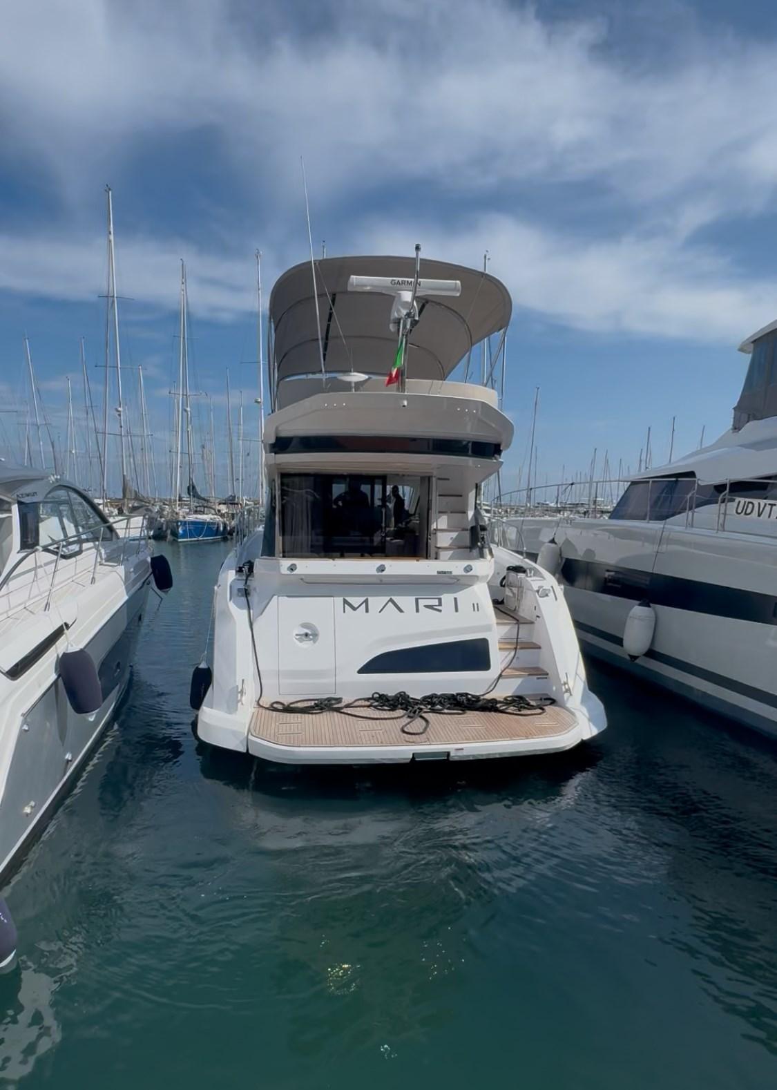 Allarme motore, Allarme sentina, Auto Dynamic Trim Interceptor, Flap elettrici, Indicatori Flaps, Luci di cortesia, Luci subacquee, Passerella, Piattaforma, Pozzetto Teak, Salpa Ancore Elettrico, Scaletta da bagno, Tavolo pozzetto, Winch tonneggio di poppa.