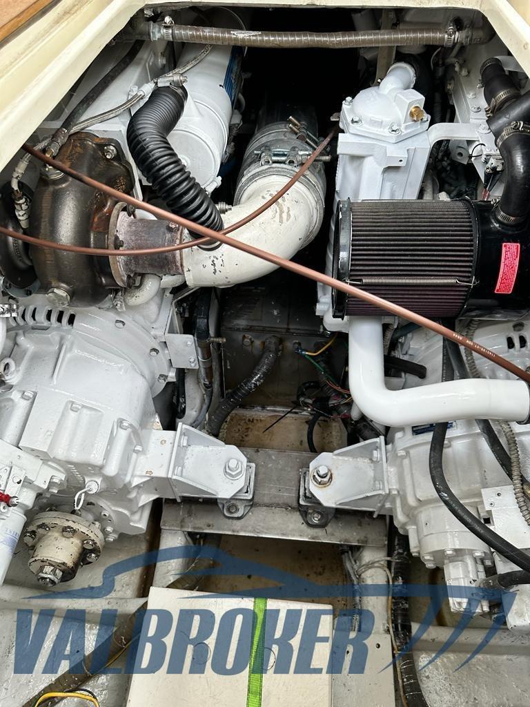 Colombo 44 motorizzata con 2x450 HP Cummins 6 cilindri in linea d'asse turbo diesel con solo 450 ore. Venduta nuova sul Lago di Como, usata due mesi l'anno in Sardegna poi sempre in capannone. Unico proprietario sino al 2021. Cabina armatoriale a prua con letto matrimoniale e seconda cabina con letti a castello e bagno separato. Refit completo eseguito su Lago di Como da Yacht Service di Paolo Meroni tra il 2022 e il 2023. 2023: nuova pompa oleodinamica su passerella e nuova centralina. Ottobre 2024: eseguita antivegetativa su scafo e flap e trattamento prop speed su assi e eliche. Eseguito tagliando completo motori e generatore ( filtri gasolio, prefiltri, giranti, olio invertitore, filtri invertitori, olio invertitori, olio motore, guarnizione turbine, revisione pompa acqua mare). Marzo/Aprile 2026: aftercooler nuovo, nuovo serbatoio acque nere, nuovo mobiletto esterno, revisione climatizzatore, nuova batteria del generatore.