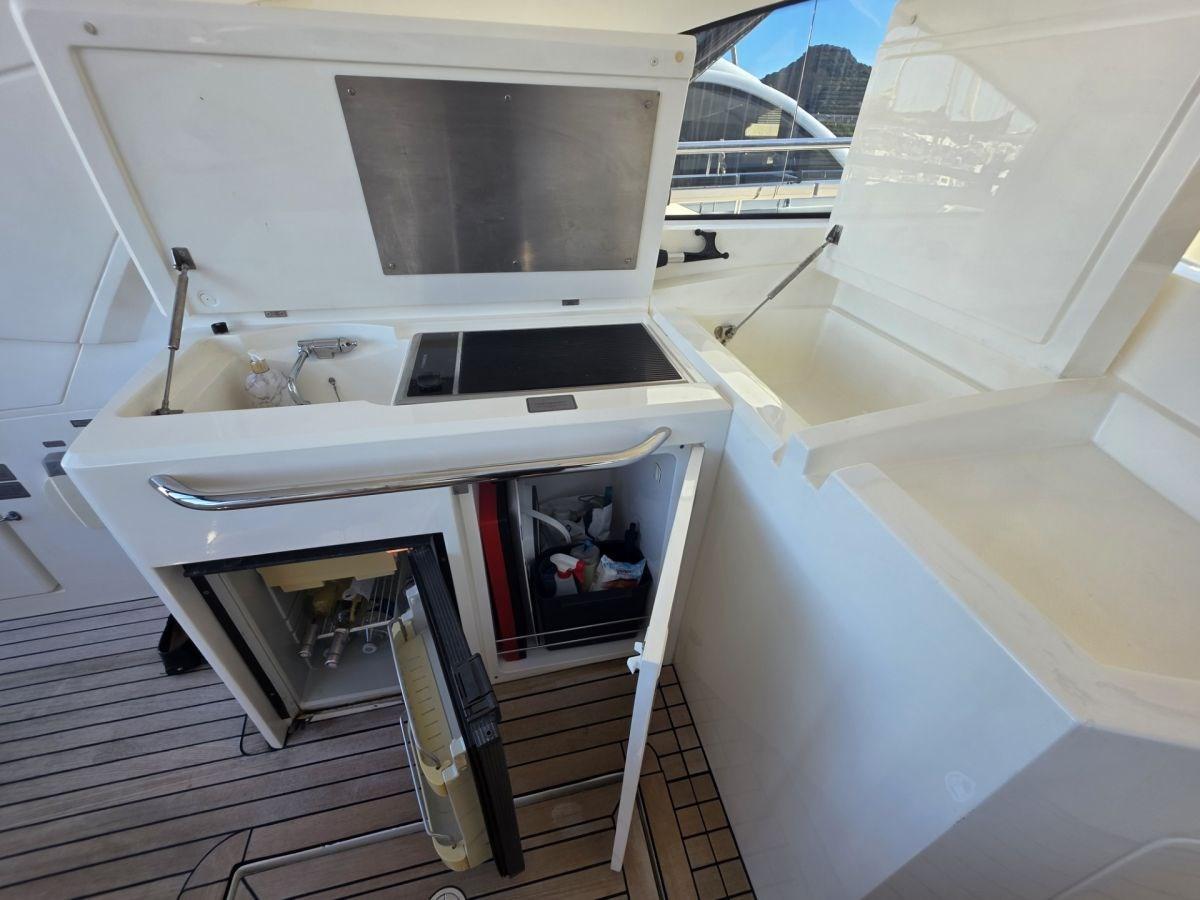 Allarme motore, Doccia esterna, Flap idraulici, Hard top, Luci di cortesia, Passerella, Pozzetto Teak, Presa 220V banchina, Presa acqua banchina, Salpa Ancore Elettrico, Scaletta da bagno.