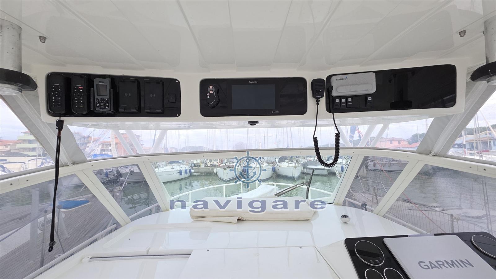 Angolo barra, 2 Comando motori elettronico (2022 DOPPIA STAZIONE, DI CUI UNA RIMOVIBILE SUL TRINCARINO DI POPPA), 2 Ecoscandaglio (2023 GARMIN), 4 GPS (2023 3xGARMIN 8412 ( UNO RIMOVIBILE CON ATTACCHI DI POPPA PER VISIONE DURANTE LA PESCA ) + 1 RAYMARINE AXIOM 9), Luci di navigazione (2022), Pilota automatico (2025 GARMIN CON COMANDO A DISTANZA), Plotter con antenna GPS, Radar (2023 GARMIN 36 MIGLIA), Radio VHF (2023), Telefono satellitare (2023 Turaya con antenna esterna).