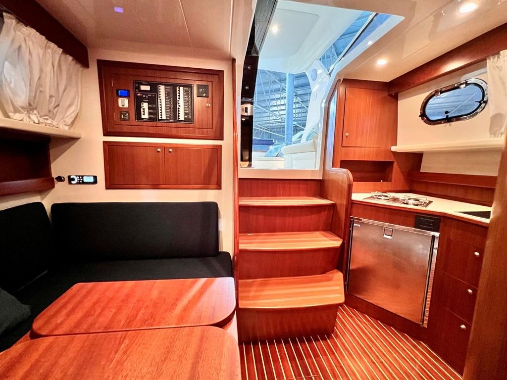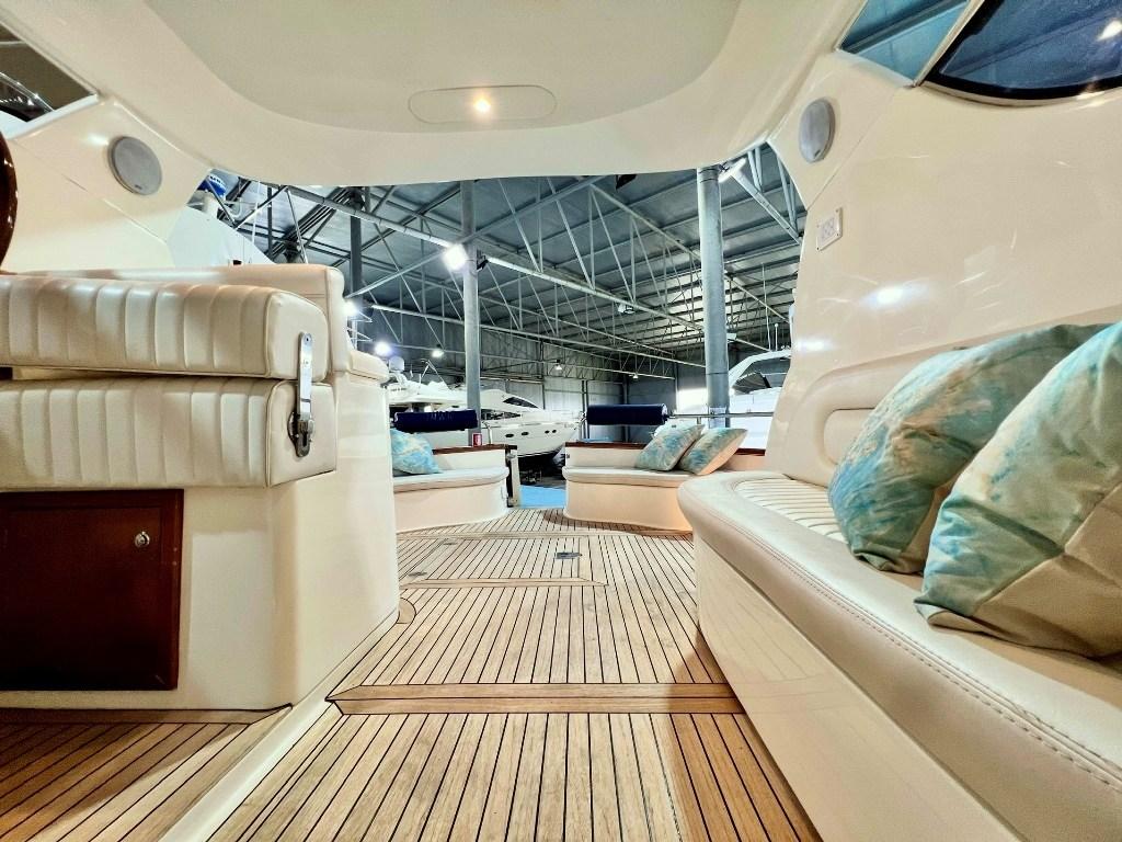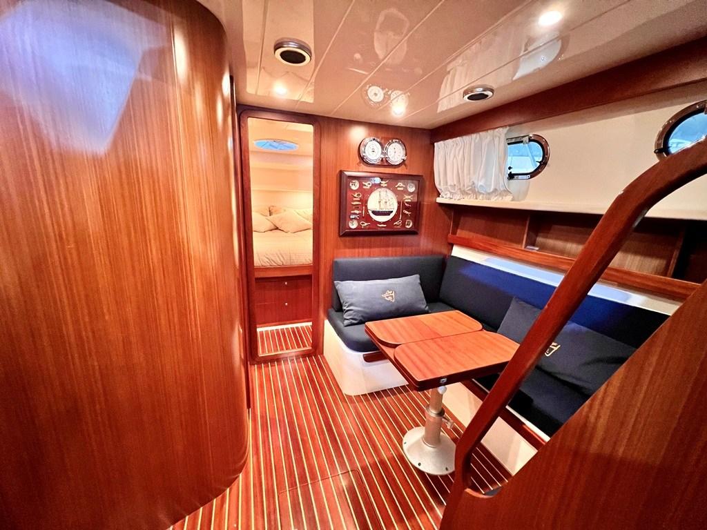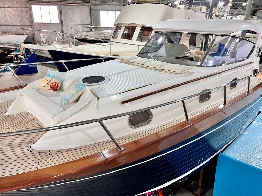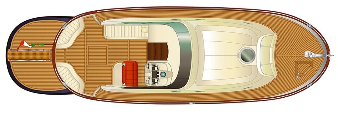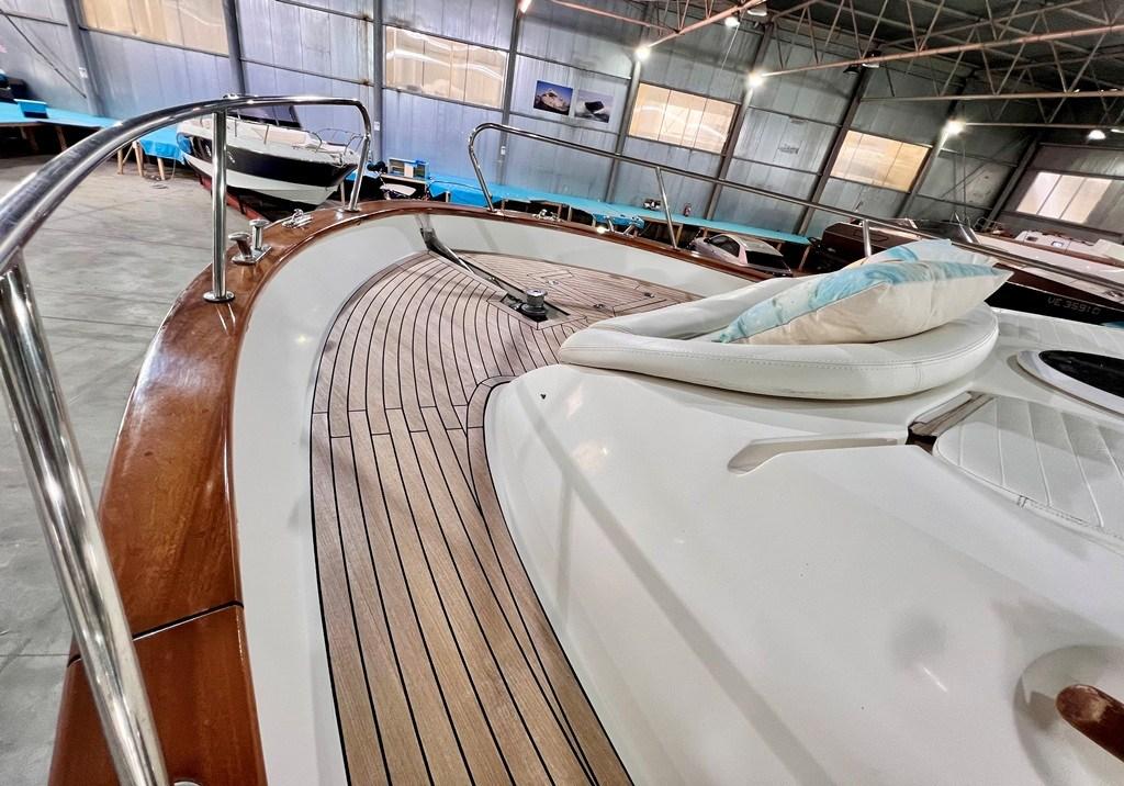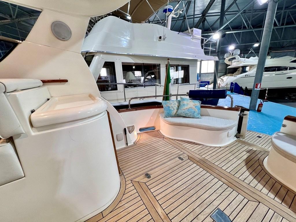 Autoclave, Colorazione speciale (Fiancate Blu Navi), Doccia esterna, Flap elettrici, Hard top (Apribile), Impianto antincendio, Piattaforma (con calpestio in teach), Pompa di sentina automatica, Ponte in teak, Porta ingresso, Pozzetto Teak, Presa 220V banchina, Salpa Ancore Elettrico, Tavolo pozzetto, Tavolo Salone Abbattibile (trasfromabile in cuccetta), Winch tonneggio di prua.