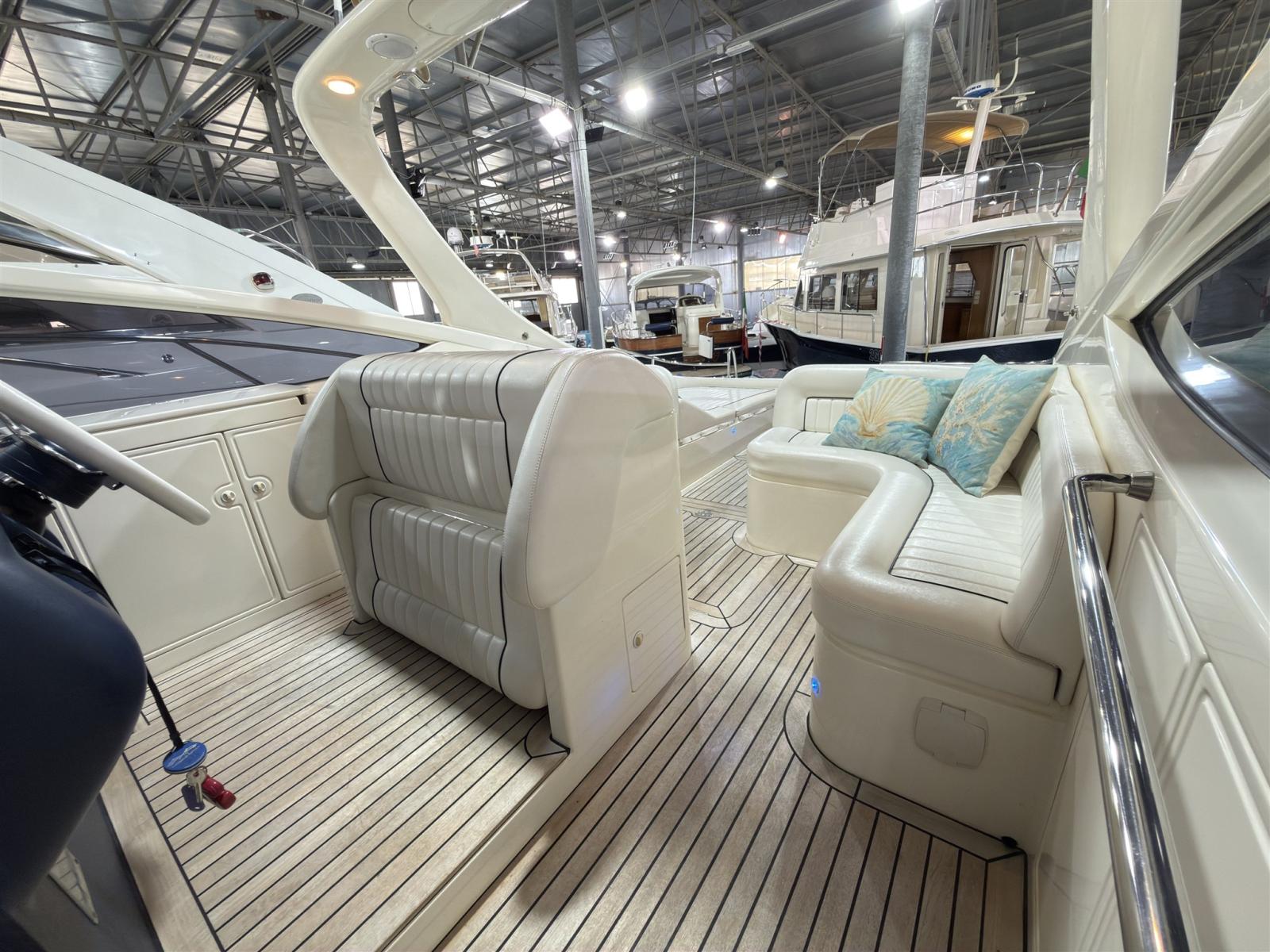 Il 43 piedi dei Cantieri di Sarnico è la barca mediterranea per eccellenza. Un lussuoso open cruiser che combina felicemente linee agili e sportive con un'inaspettata volumetria che permette una notevole vivibilità sopra e sotto coperta.