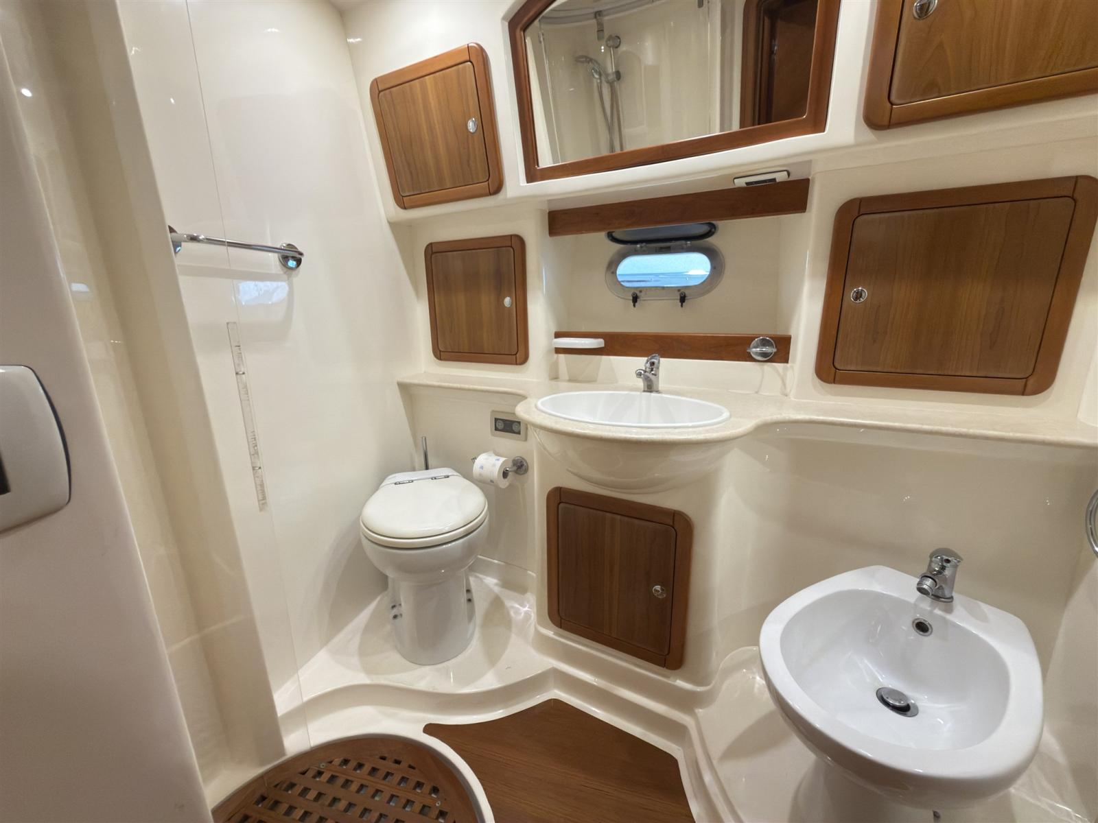 Aria condizionata (Caldo/freddo), Boiler (Bivalente), Clima reversibile, Prese interne 12v, Prese interne 220v, Serbatoio Acque Nere, 3 WC marino elettrico.
