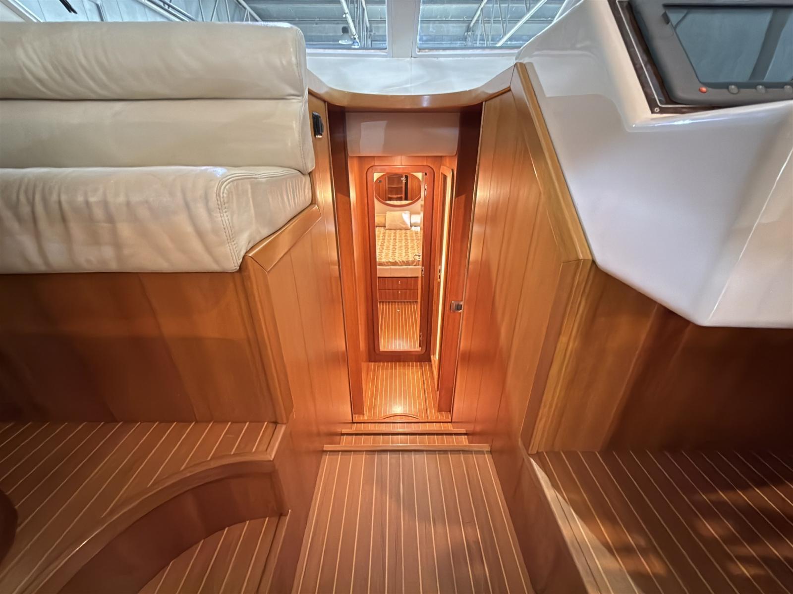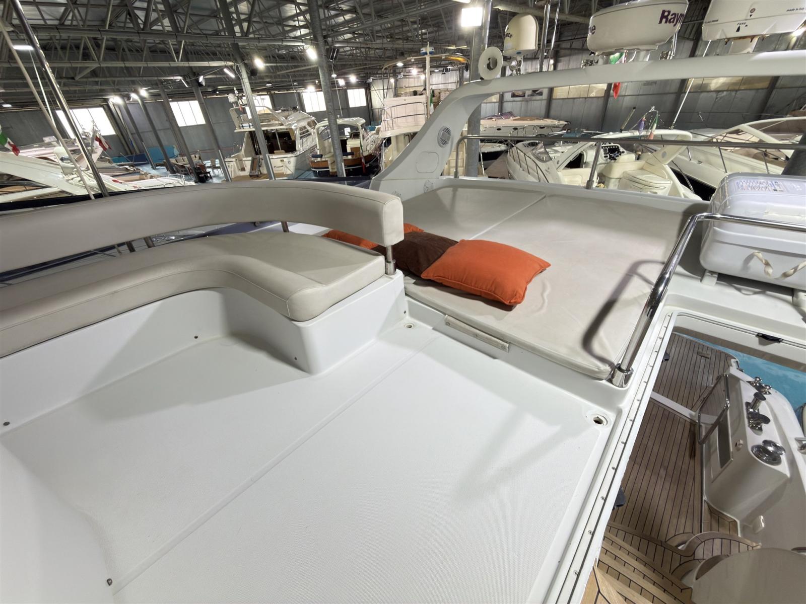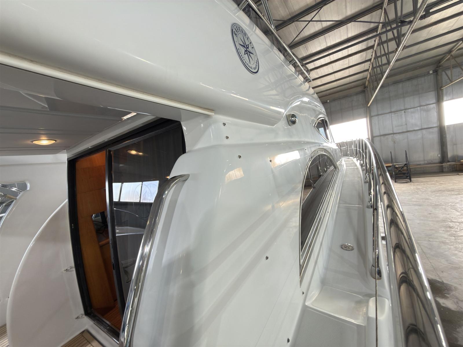 Allarme motore, Allarme sentina, Autoclave, Doccia esterna, Elica di poppa - stern thruster (Maxpower), Faro orientabile, Impianto antincendio, Indicatori Flaps, Lavaggio catena, Luci di cortesia, Passerella (idraulica), Piattaforma (con fondo in teak), Pompa di sentina automatica, Pompa di sentina manuale, Pozzetto Teak, Presa 220V banchina, Salpa Ancore Elettrico, Scaletta da bagno, Winch tonneggio di poppa, Winch tonneggio di prua.