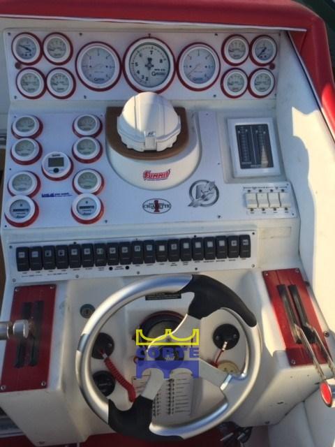 Allarme motore, Allarme sentina, Autoclave, Colorazione speciale, Doccia esterna, Fari fissi a poppa (spiaggetta poppa), Flap idraulici, Impianto antincendio, Indicatori Flaps, Luci di cortesia, Pompa di sentina automatica, Porta ingresso, Presa 220V banchina, Scaletta da bagno.