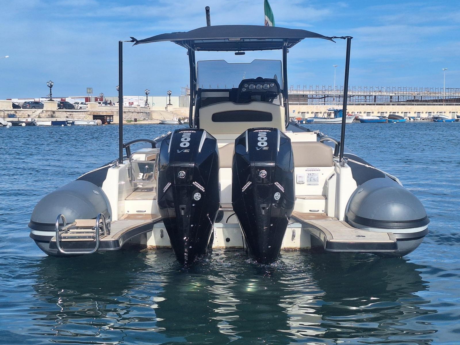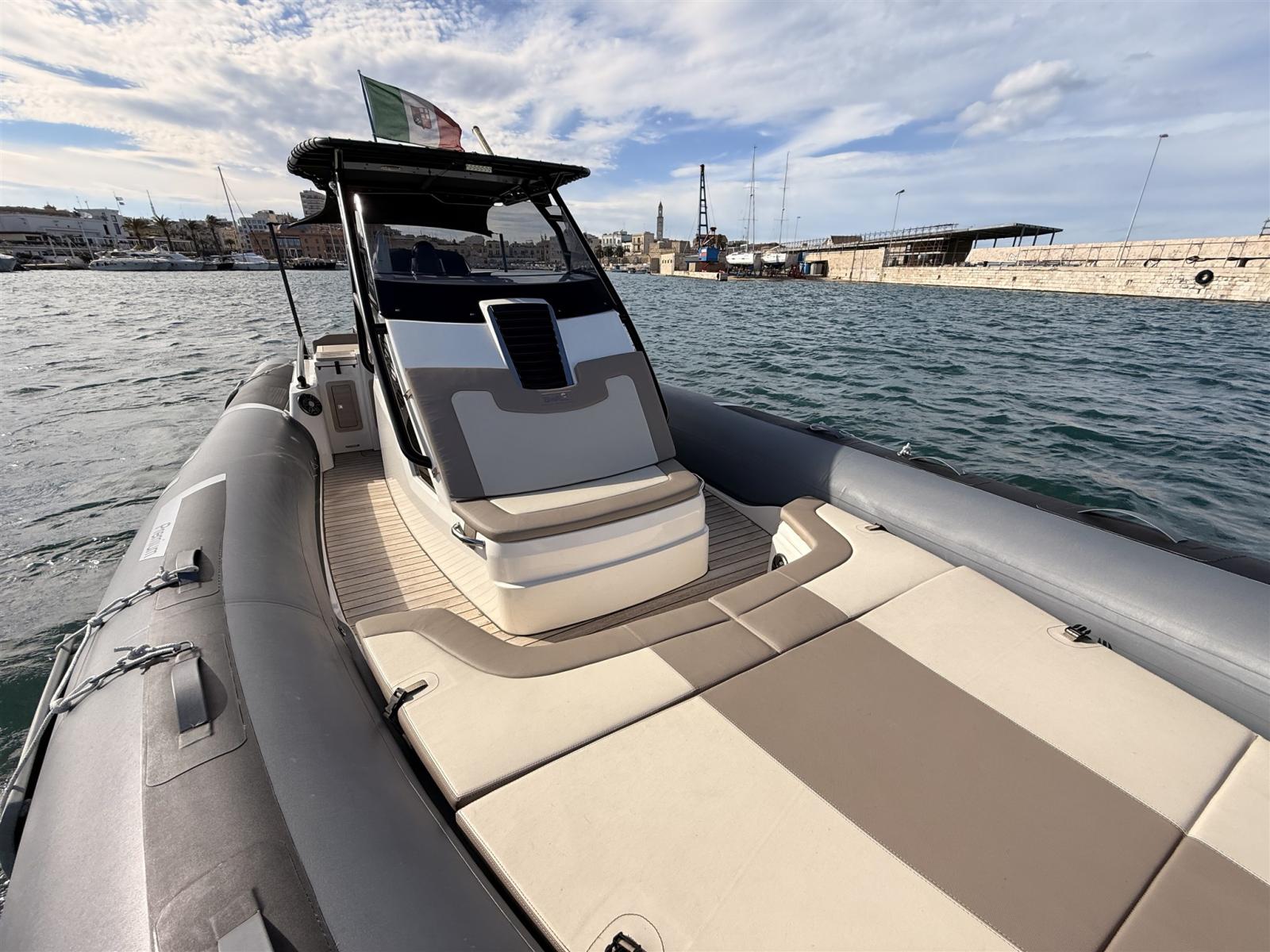 Imbarcazione natante dal look sportivo ed elegante, in configurazione Full Optional, con allestimento di grande impatto grazie ai tubolari grigio Impression e al bellissimo T-Top total black. Pensata per offrire comfort, stile e prestazioni, è la soluzione ideale per chi cerca un battello recente, completo e pronto all’uso.