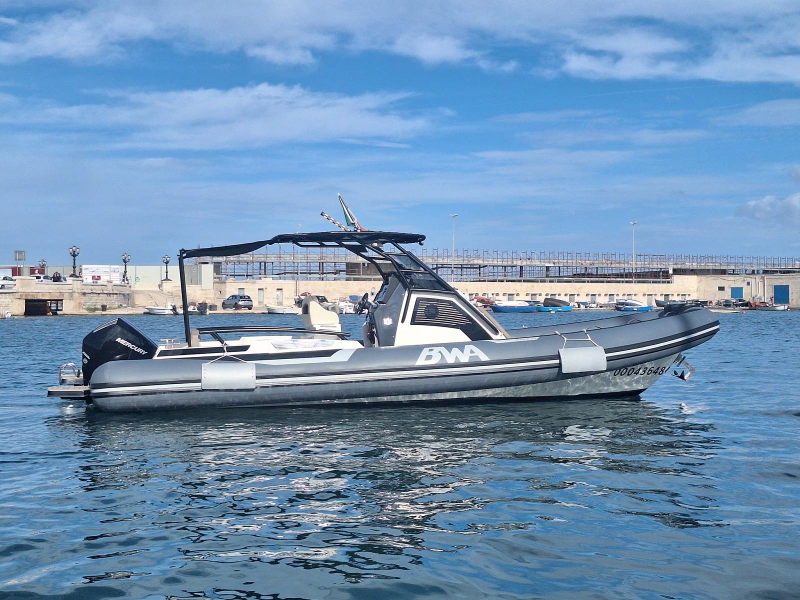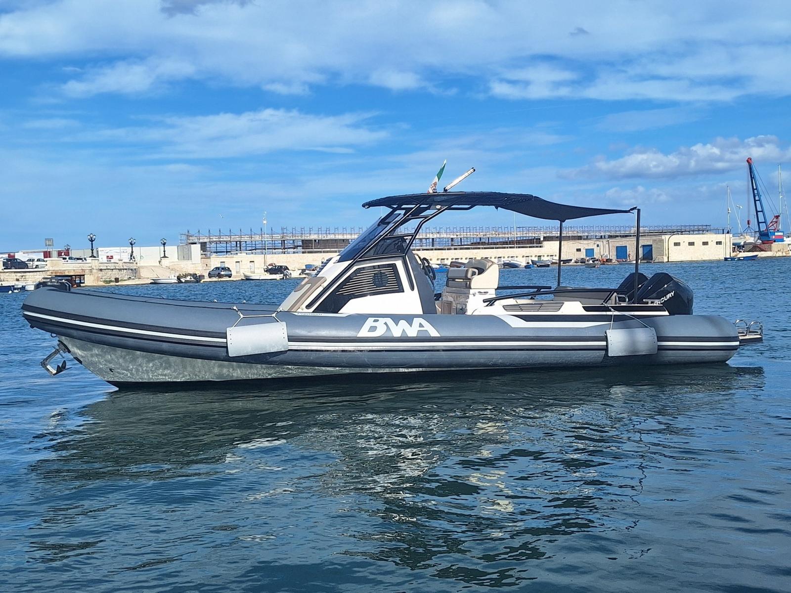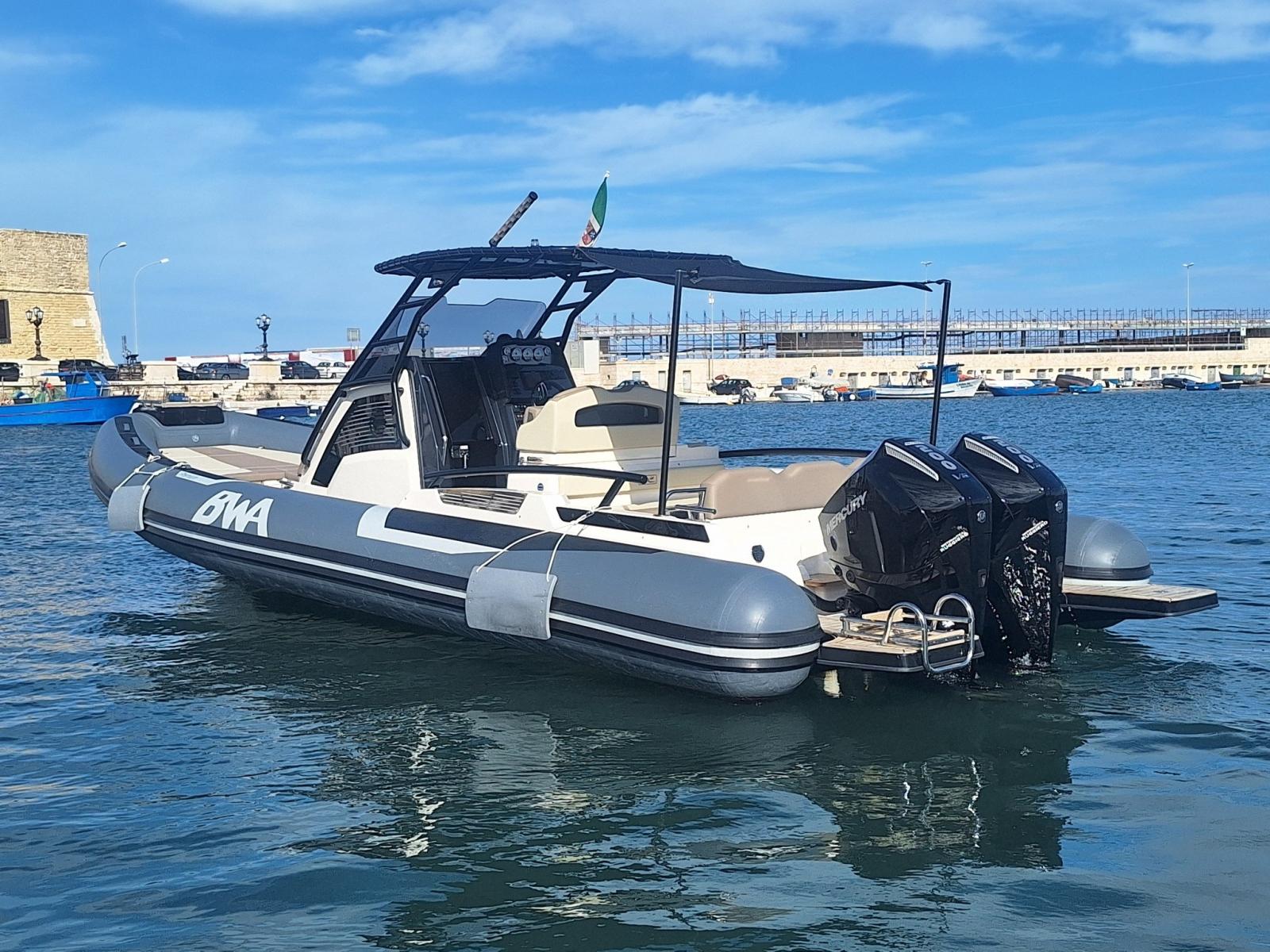 BWA 30 Premium del 2024 in condizioni pari al nuovo, motorizzata con 2 Mercury da 200 HP con sole 32 ore di moto.