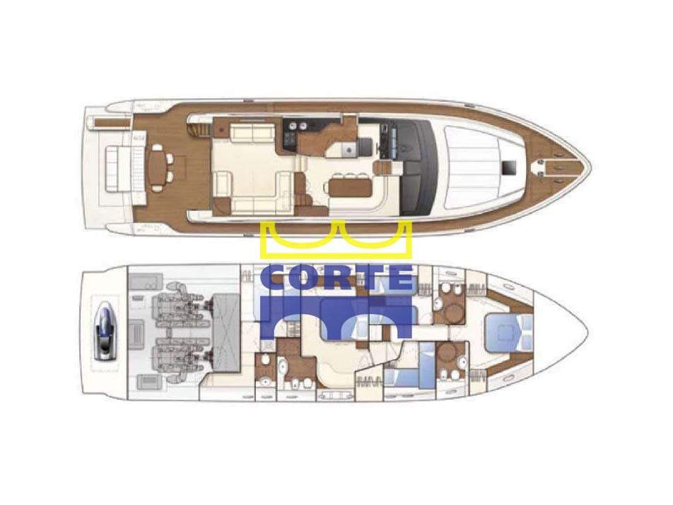 Boiler, Cassaforte, Clima reversibile, Controllo Domotica, Dissalatore (150 l/h), Impianto acque nere, Prese interne 12v, Prese interne 220v, Serbatoio Acque Nere, Telecamera, WC marino elettrico.