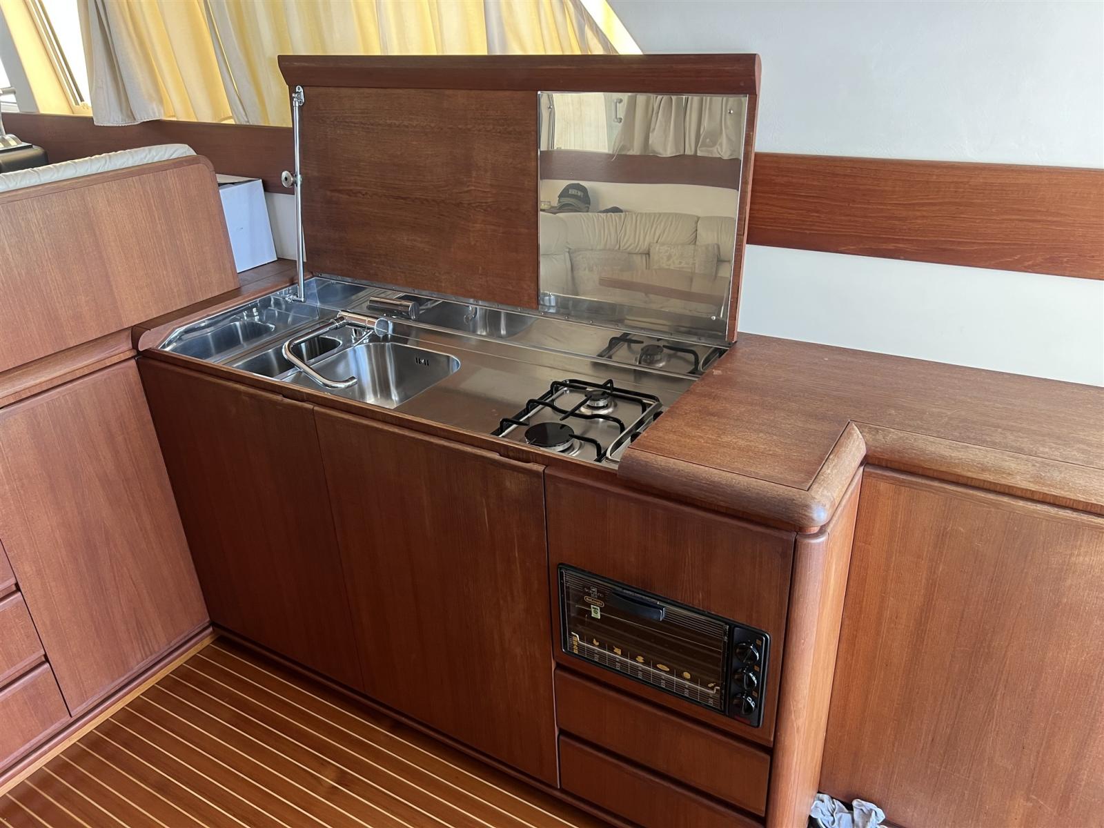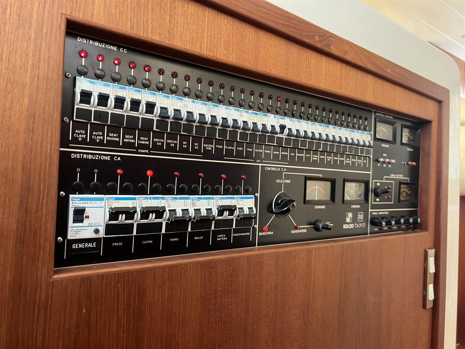 Acqua Calda, Boiler, Indicatore del serbatoio del carburante, Indicatore del Serbatoio dell’Acqua, Indicatore della temperatura del motore, Prese interne 12v, Prese interne 220v, WC marino elettrico.