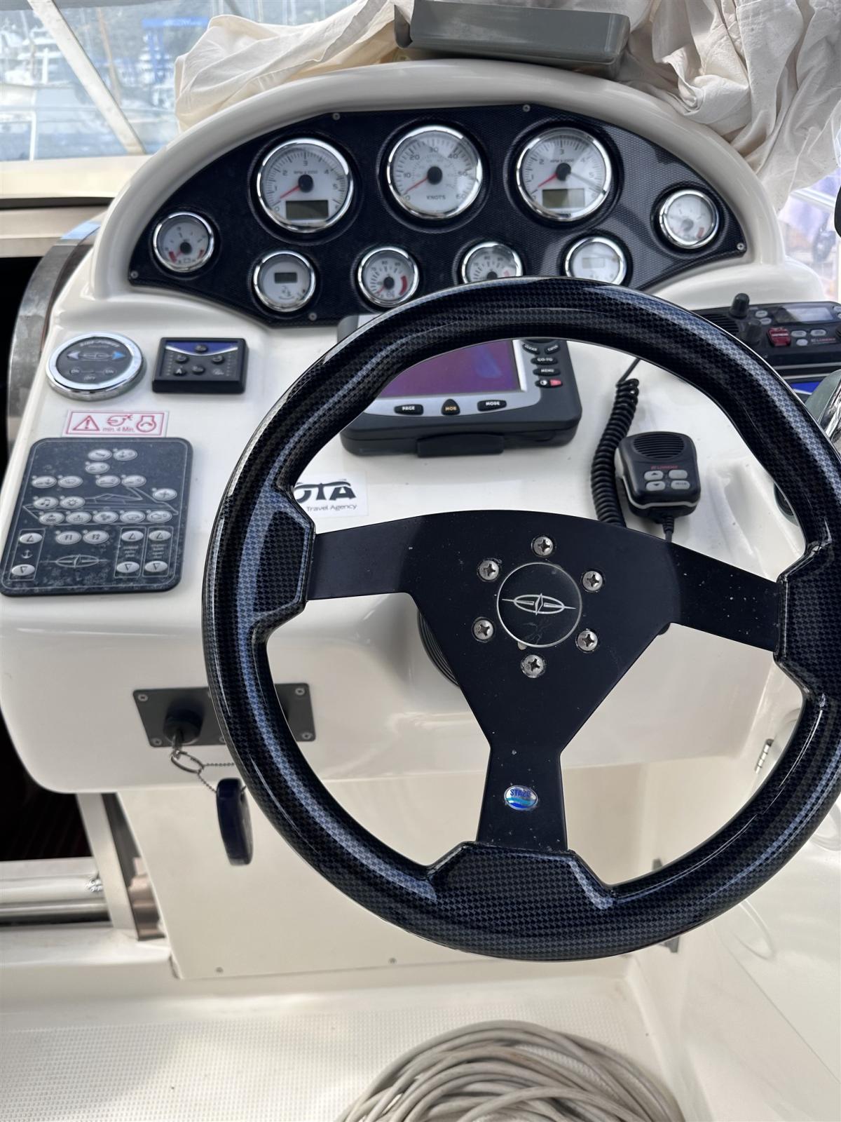 Allarme motore, Allarme sentina, Ancora (Delta), Apertura Vano Motore Elettrica, Autoclave, 4 Batterie (2 servizi da 120 amp/h, 2 motori da 100 amp/h), Cavo corrente di banchina, Colorazione speciale (Blu), Corrimano (Inox), Doccia esterna, Lavandino nel Pozzetto, 4 Parabordi, Passerella (Alluminio pieghevole), Piattaforma (Molto ampia), Pompa di sentina automatica, Presa 220V banchina, Salpa Ancore Elettrico, Scaletta da bagno, Tavolo pozzetto, Tavolo Salone Abbattibile.