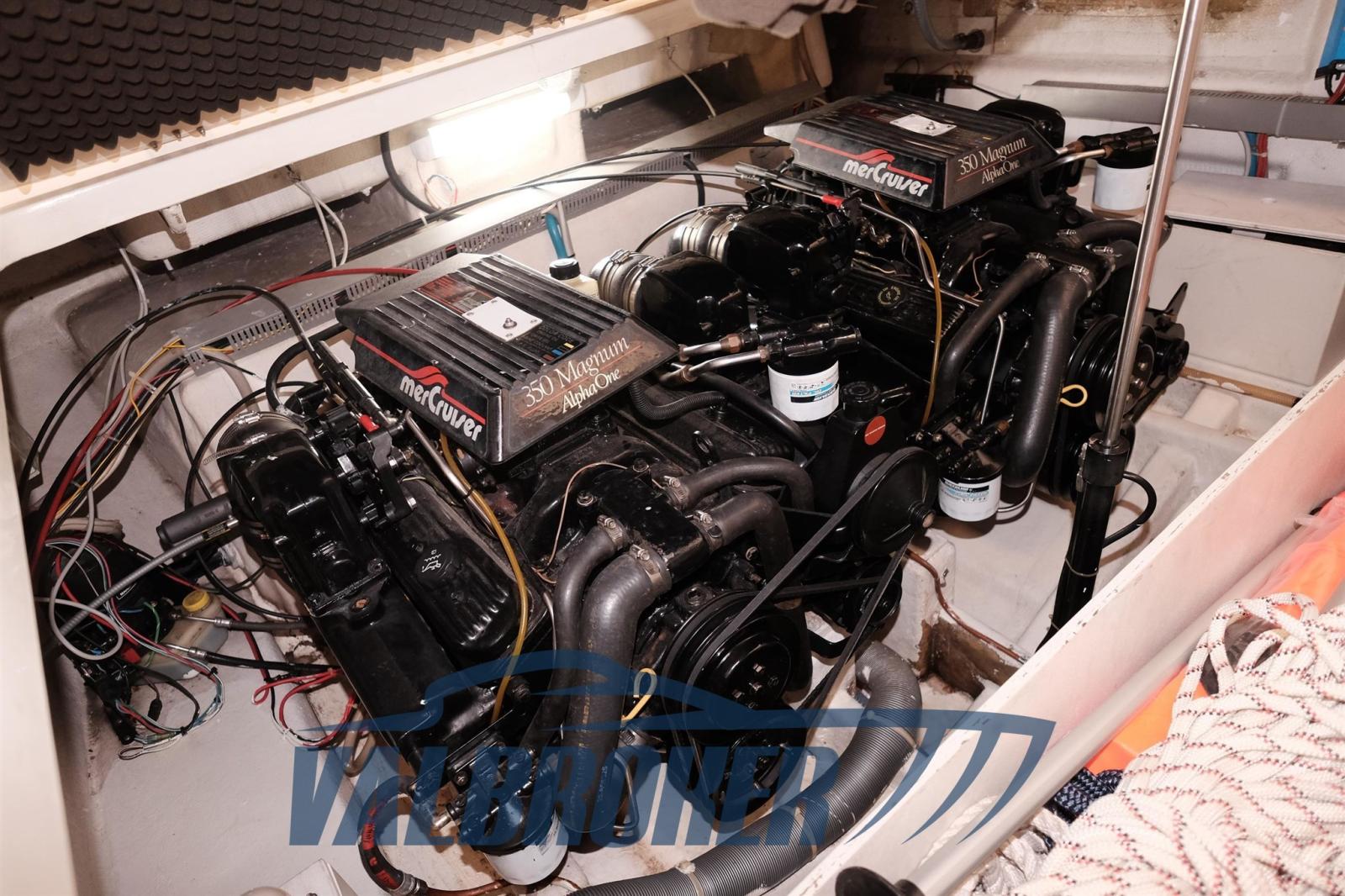 Motori 2x Mercury 350 MAGNUM. V8 benzina. Nel 2021 i motori e le trasmissioni sono stati portati a zero ore da ufficiale Mercury Como. Lavori eseguiti 2021: verniciatura murate nobilitate con linee blu, tappezzeria interna in Alcantara color panna, cielini, tappezzeria esterna originale Colombo, revisione impianto elettrico, sostituzione di tutti i bottazzi da artigiano specializzato, installazione verricello Lewmar, fono assorbente vano motori, verniciatura sentina sala motori, asportazione vecchi strati anti vegetativa, pulizia serbatoi carburante. - 2022: stampo vetroresina con piattaforma estesa in teak massello. 2024: relais motore destro, solenoid e harness assembly, radio, luce di via di poppa, antivegetativa, lucidatura, trattameno teak su pozzetto e plancetta con olio, tagliando motori e trasmissioni.