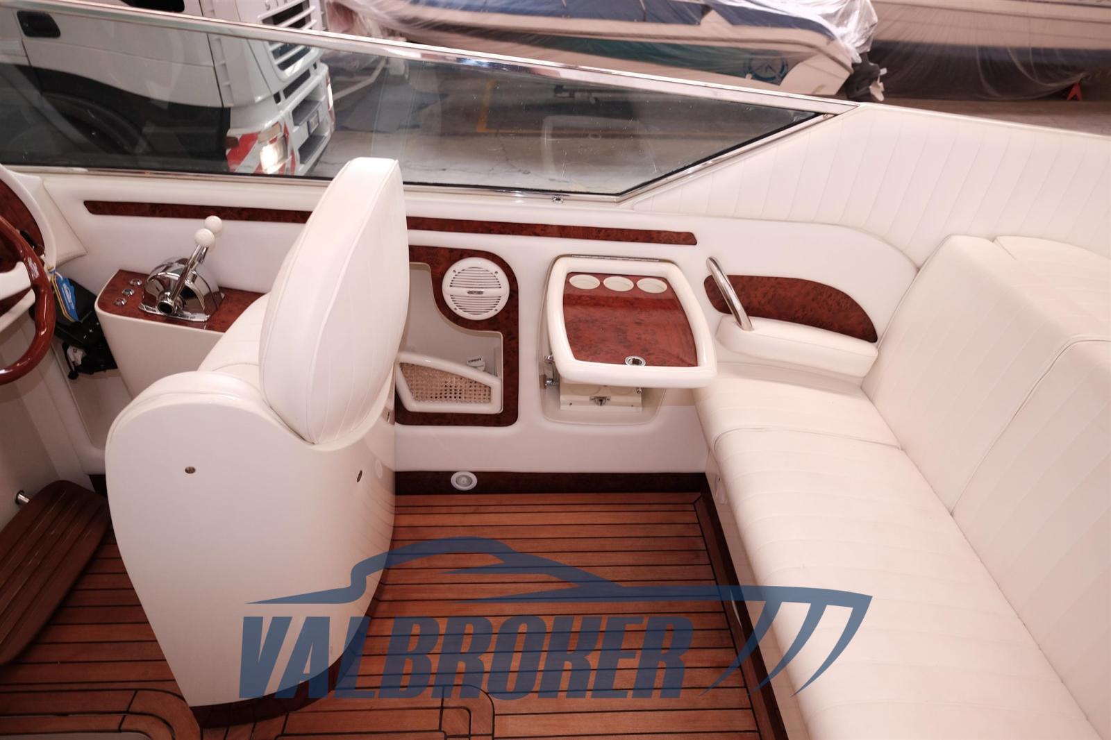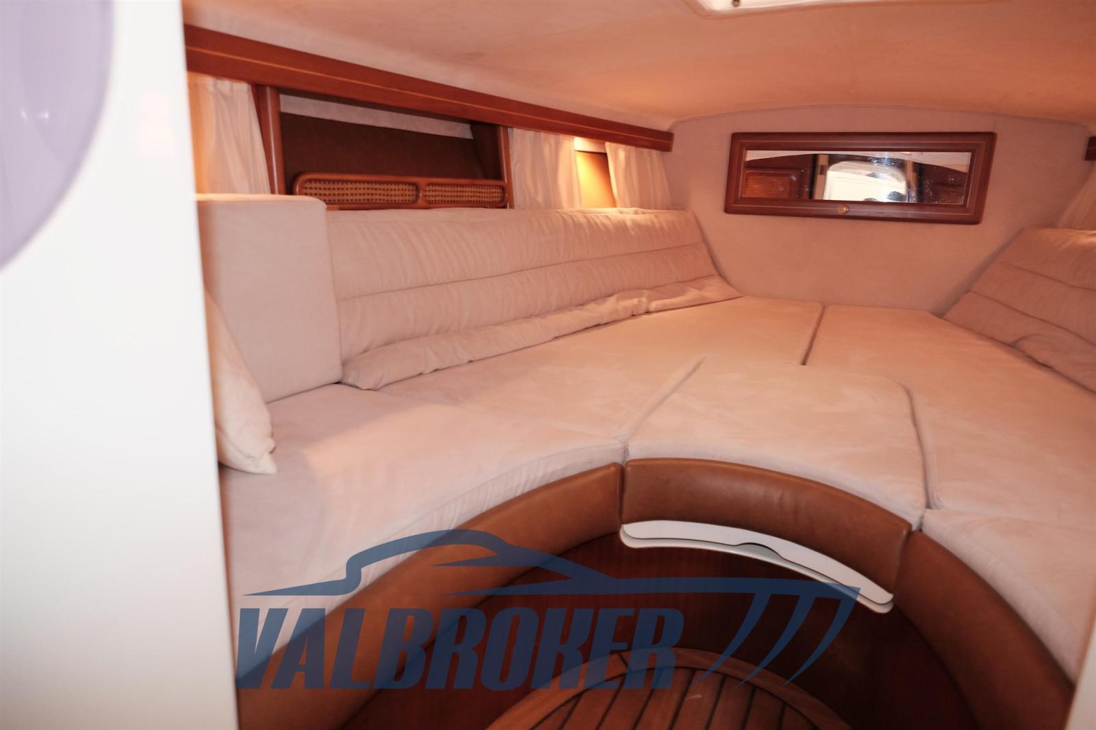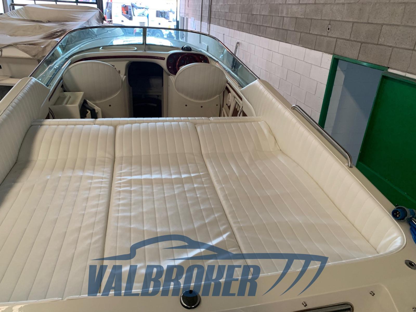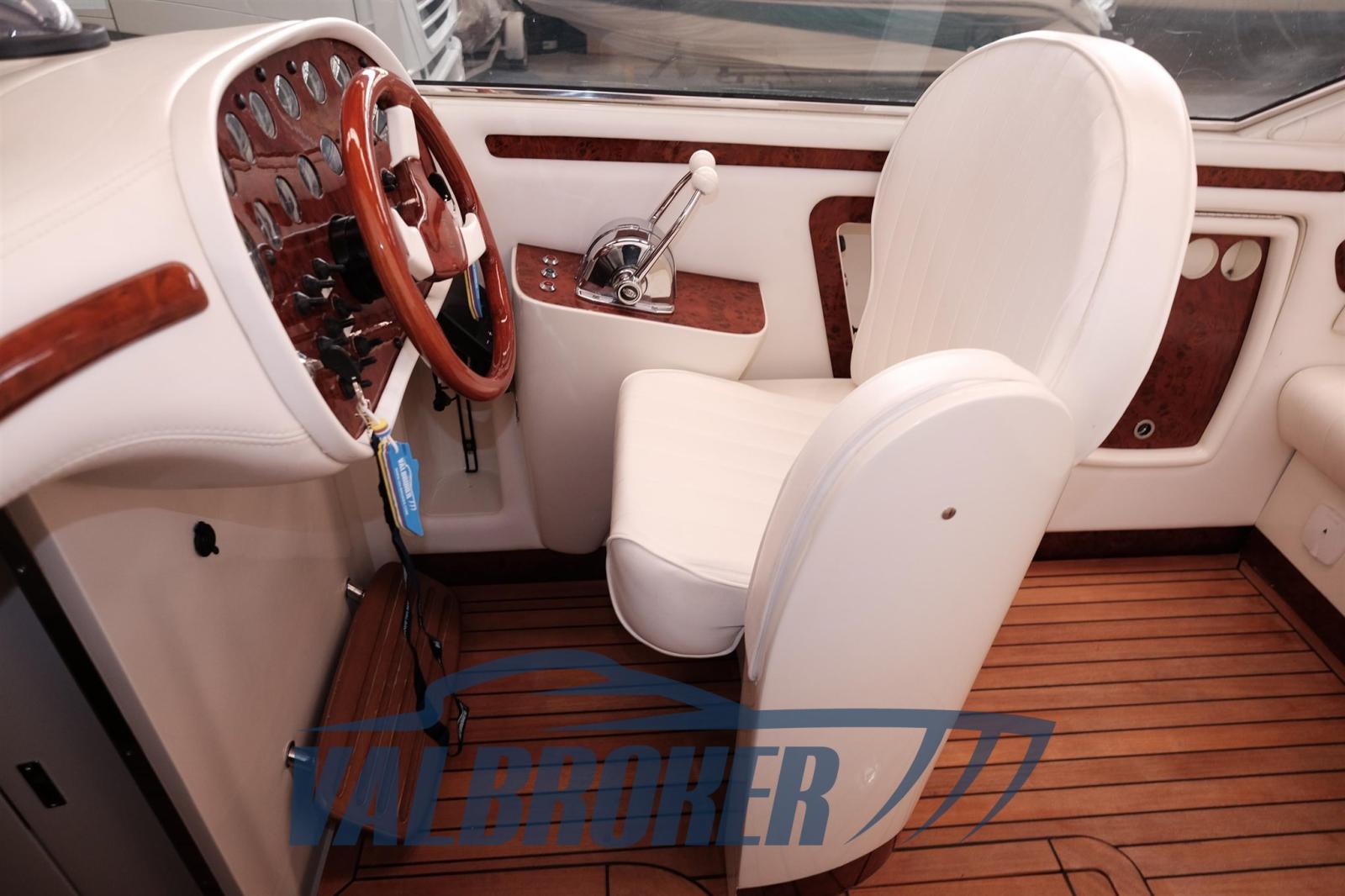 prendisole di poppa, comandi motori Morse, interni in alcantara panna,visone, golfare di prua, griglie di aerazione, parabordi con calze blu, pavimento pozzetto e pavimento dinette in legno di teak massello, 2021: estintori , rettifica eliche, cavi marce nuovi, riverniciatura mobili frigo e due sedili pozzetto, luci di via, guarnizione oblò passauomo,