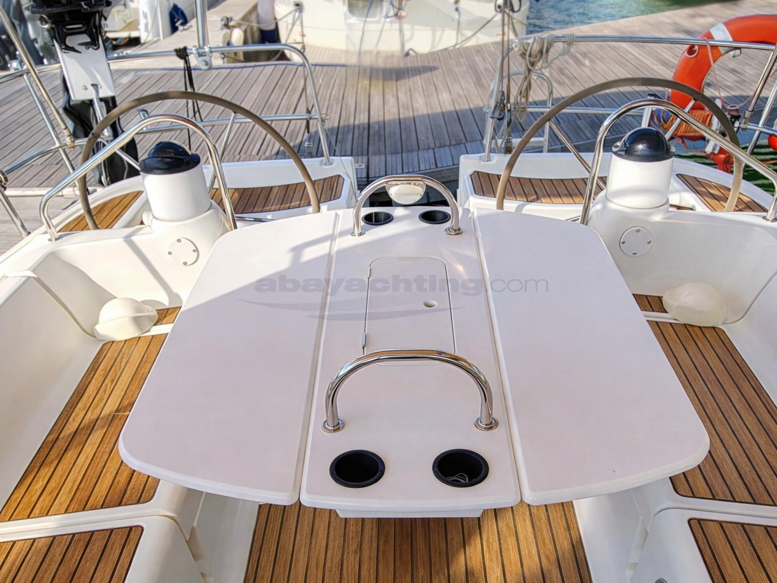 Allarme motore, Allarme sentina, Ancora (Trefoil + catena 50 mt del 2022), Autoclave (Jabsco), 4 Batterie (3 Exide servizi 95 AH + 1 Banner AGM 95), Camminamenti laterali in teak, Caricabatterie (Phoenix Victron 50A - Sistema Victron completo 2025), Doccia esterna, Doppia timoneria, Pannelli Solari, Parabordi, Pompa di sentina automatica, Pompa di sentina manuale, Pozzetto Teak, Presa 220V banchina, Salpa Ancore Elettrico, Sartiame spiroidale, Scaletta da bagno, Supporto motore fuoribordo, Tavolo pozzetto, 4 Winch (Harken), Windex.