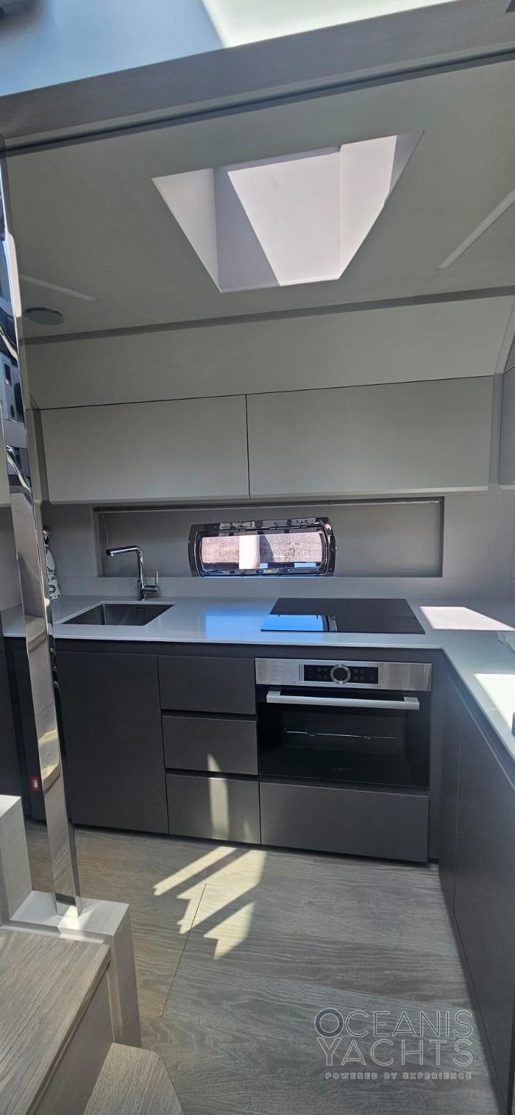AIS (Simrad NAIS500), Antenna radar, Comando motori elettronico, Computer di bordo (Full Simrad navigation suite), Contametri catena (12mm galvanised, 75 metres), Display, Joystick, Mappe e guide, Monitor dei consumi, 2 Plotter con antenna GPS (2 x Simrad touchscreen), Radio VHF (Simrad), Sedile Copilota.