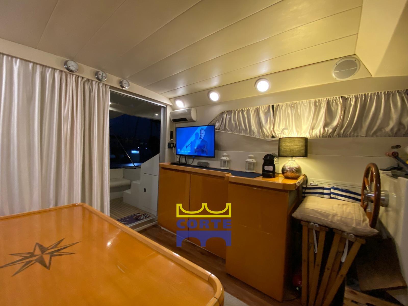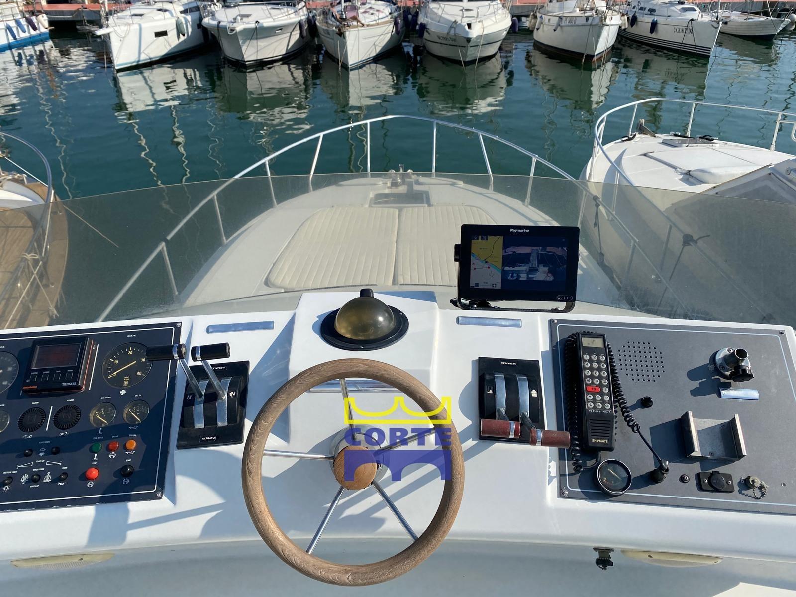 Allarme motore, Autoclave, Batterie (2023), Doccia esterna, Doppia timoneria, Flap idraulici, Gruette (passerella), Luci subacquee, Passerella (elettroidraulica), Piattaforma (di poppa in teak), Pompa di sentina automatica, Porta ingresso, Pozzetto Teak, Presa 220V banchina, Presa acqua banchina, Rollbar, Salpa Ancore Elettrico, Scaletta da bagno, Tavolo Salone Abbattibile, Tromba, Winch tonneggio di prua.