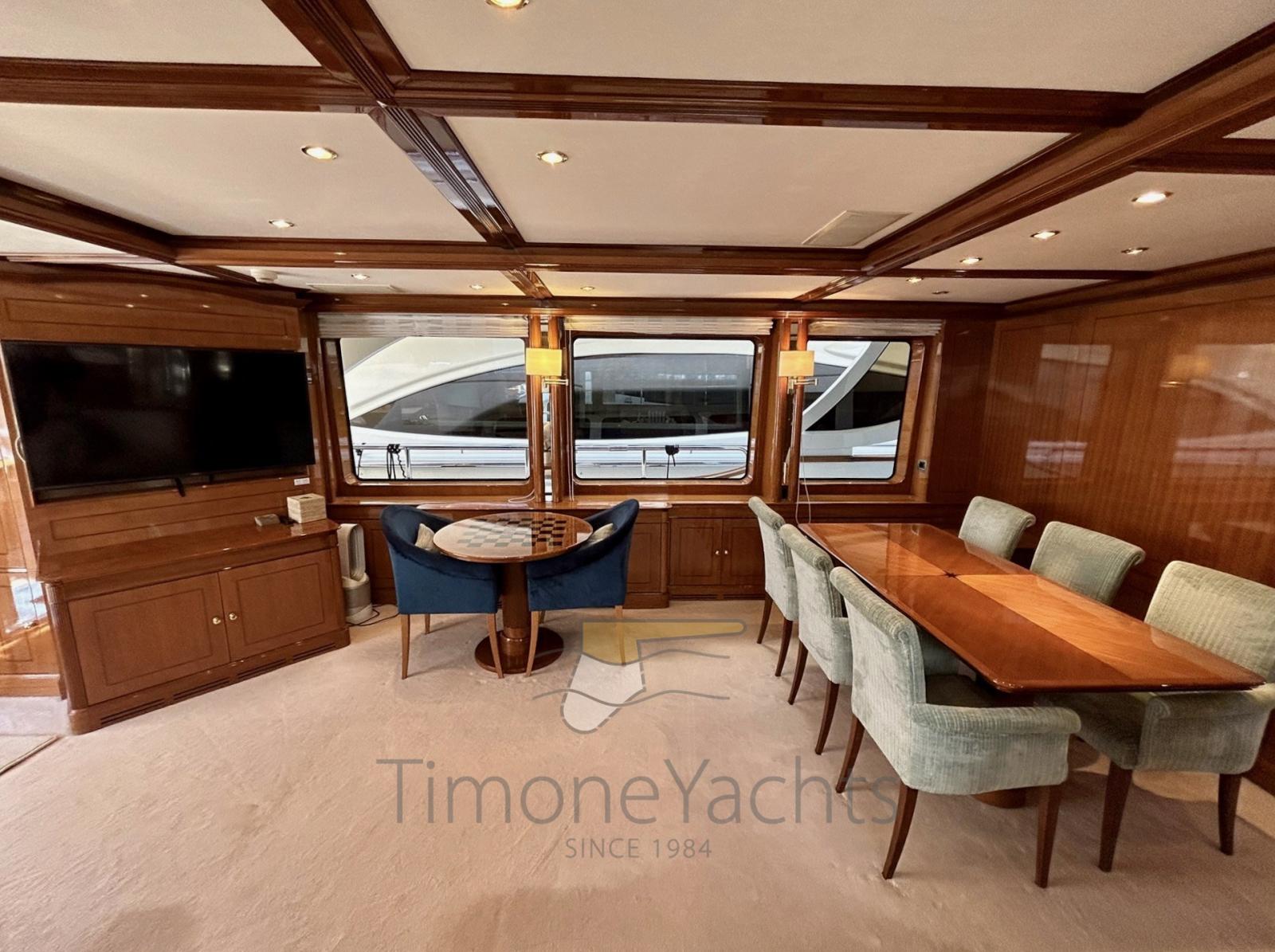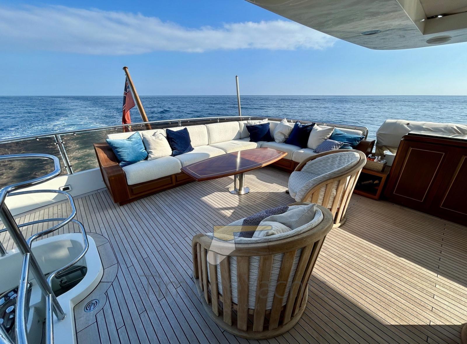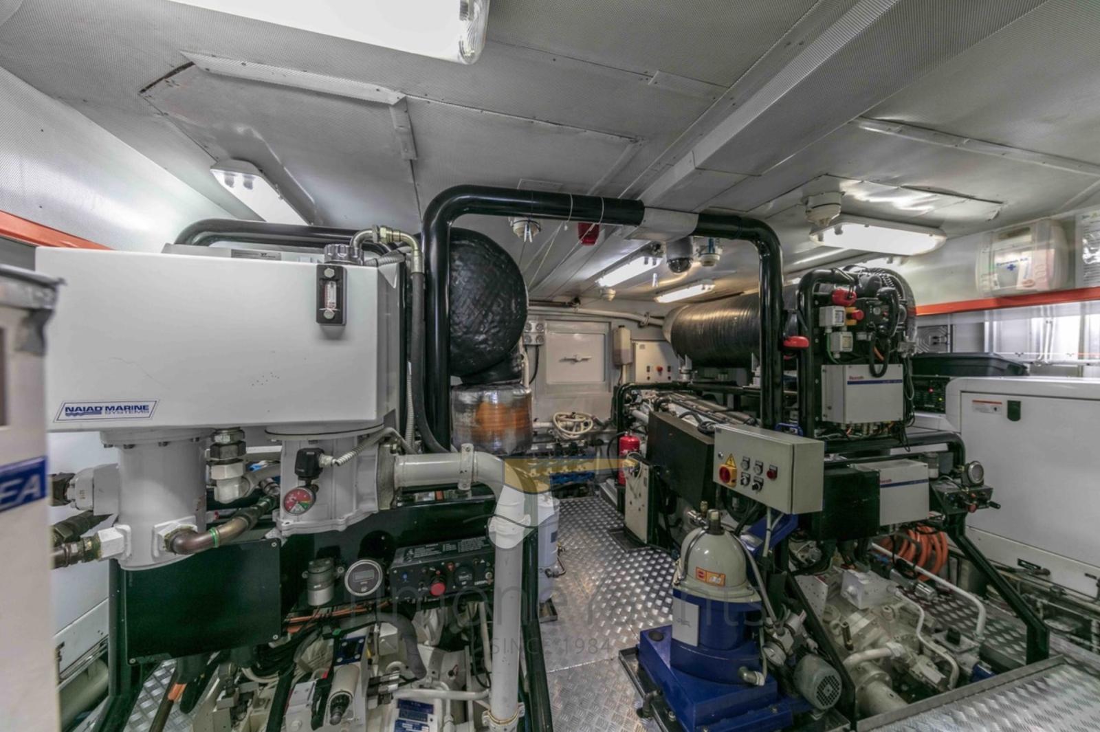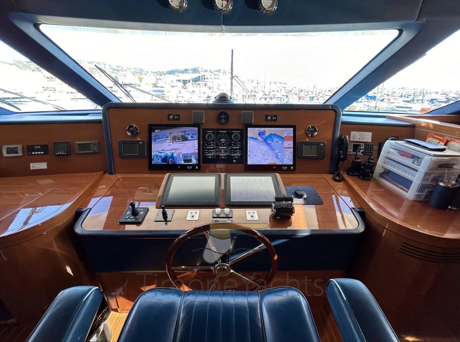 Questa Navetta senza tempo è stabilizzata, ed il flybridge è stato riammodernato togliendo la gru (disponibile) per creare un lounge più grande nella parte poppiera del fly. Veramente stupenda.
