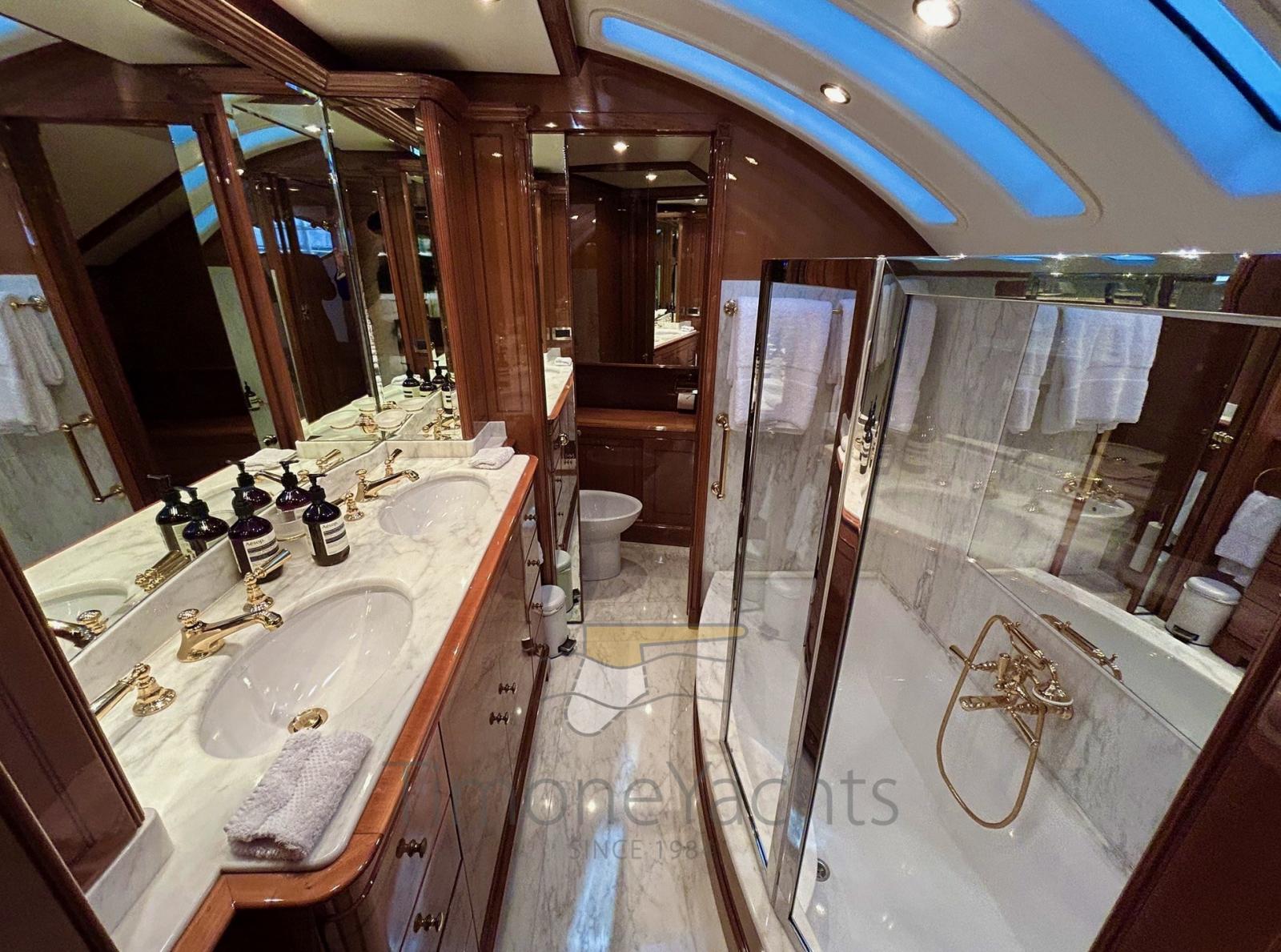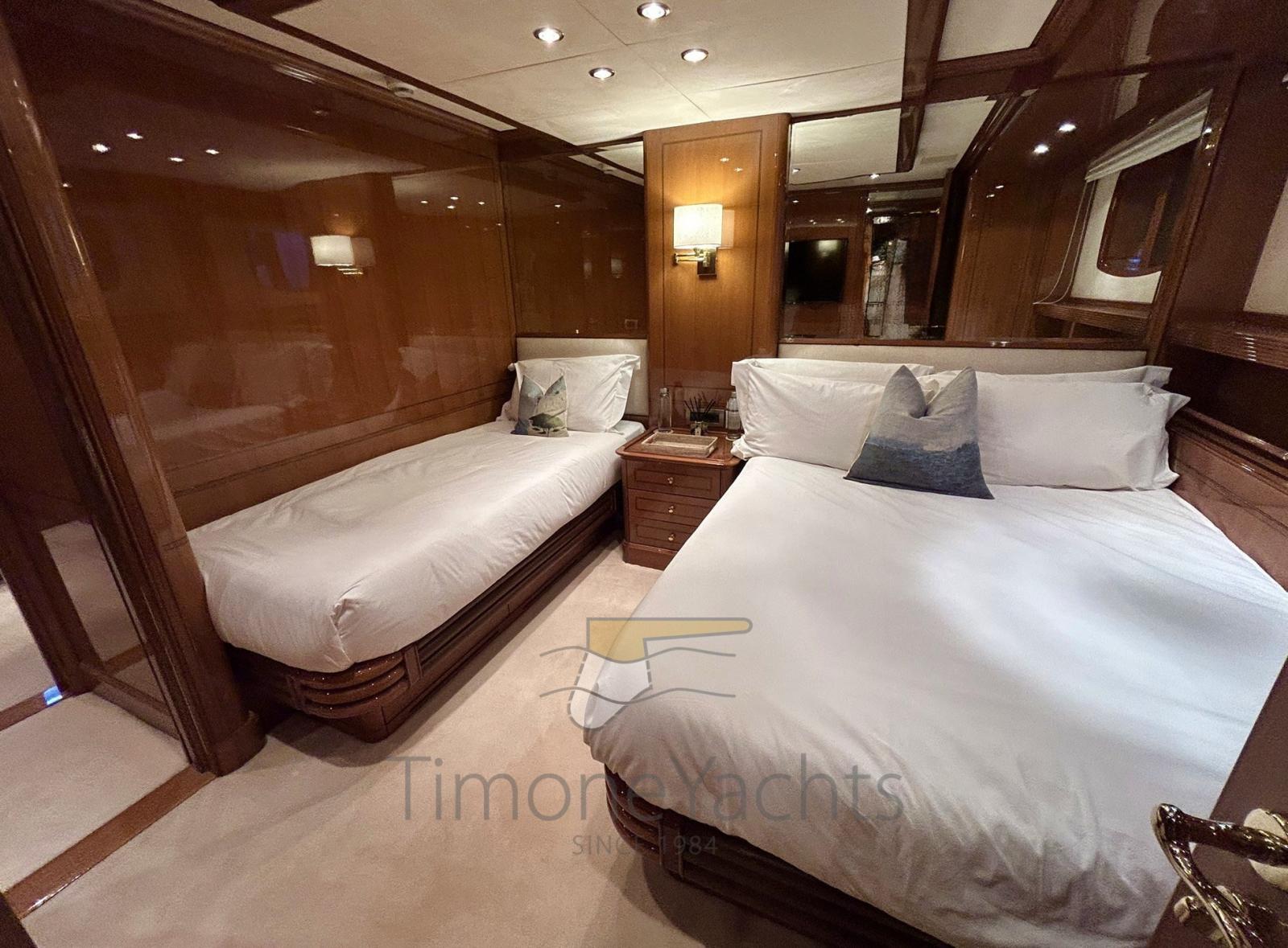 Splendido Benetti Legend 85 Privato con Iva assolta. Barca tenuta da equipaggio ed in eccezionali condizioni. 4 cabine ospiti per 10 posti letto totali e 5 bagni ospiti, oltre 2 cabine crew doppie, tot 4 posti letto equipaggio e due bagni.