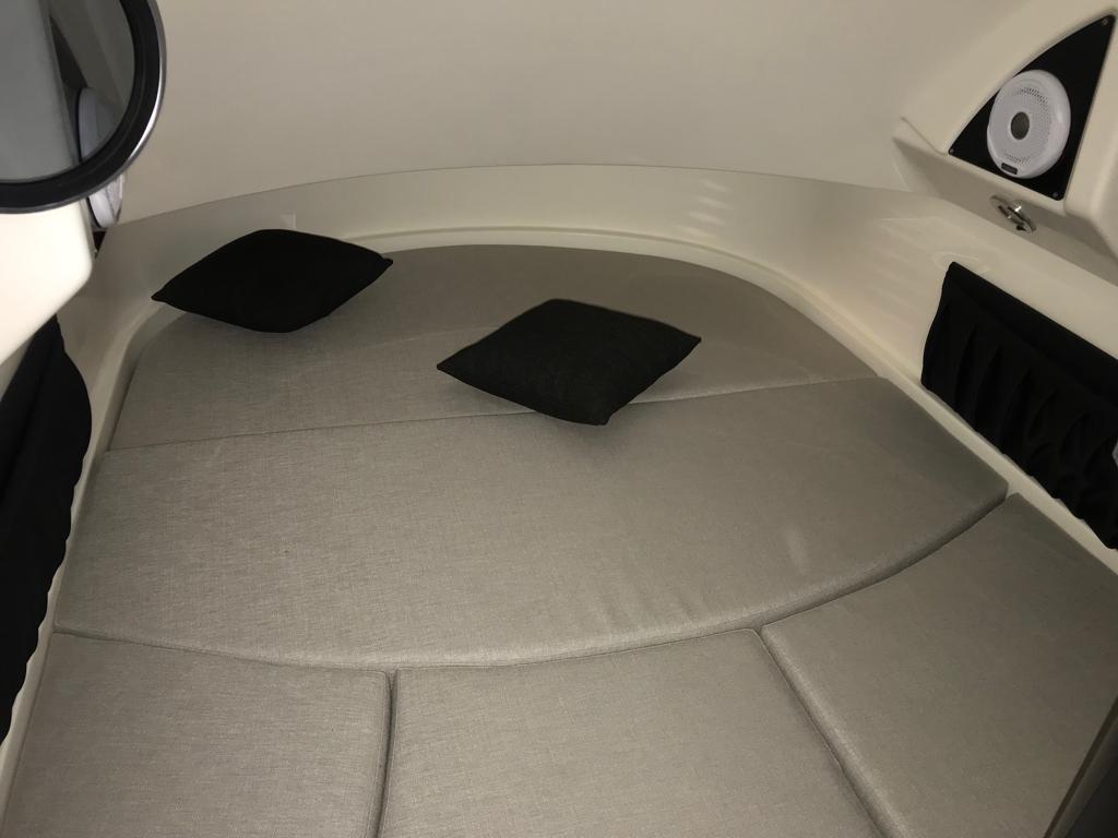 Allestimento cabina Luxury completo con bagno separato con doccia e wc, arredi, mobili e cuscinerie
