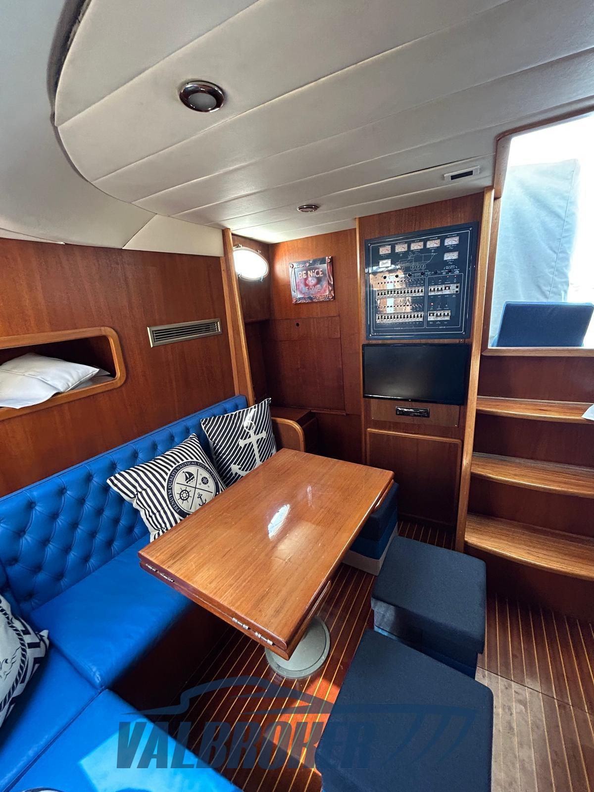 Numerosi lavori effettuati nel 2024: carena portata a zero,telo invernale parziale nuovo,legni pozzetto nuovi,parabrezza policarbonato nuovo,materassi interni nuovi,rubinetteria nuova,sostituzione generatore,revisione passerella, revisione strumenti,riverniciatura bottazzo e pulpito e telaio parabrezza,lucidatura totale,telecomando passerella