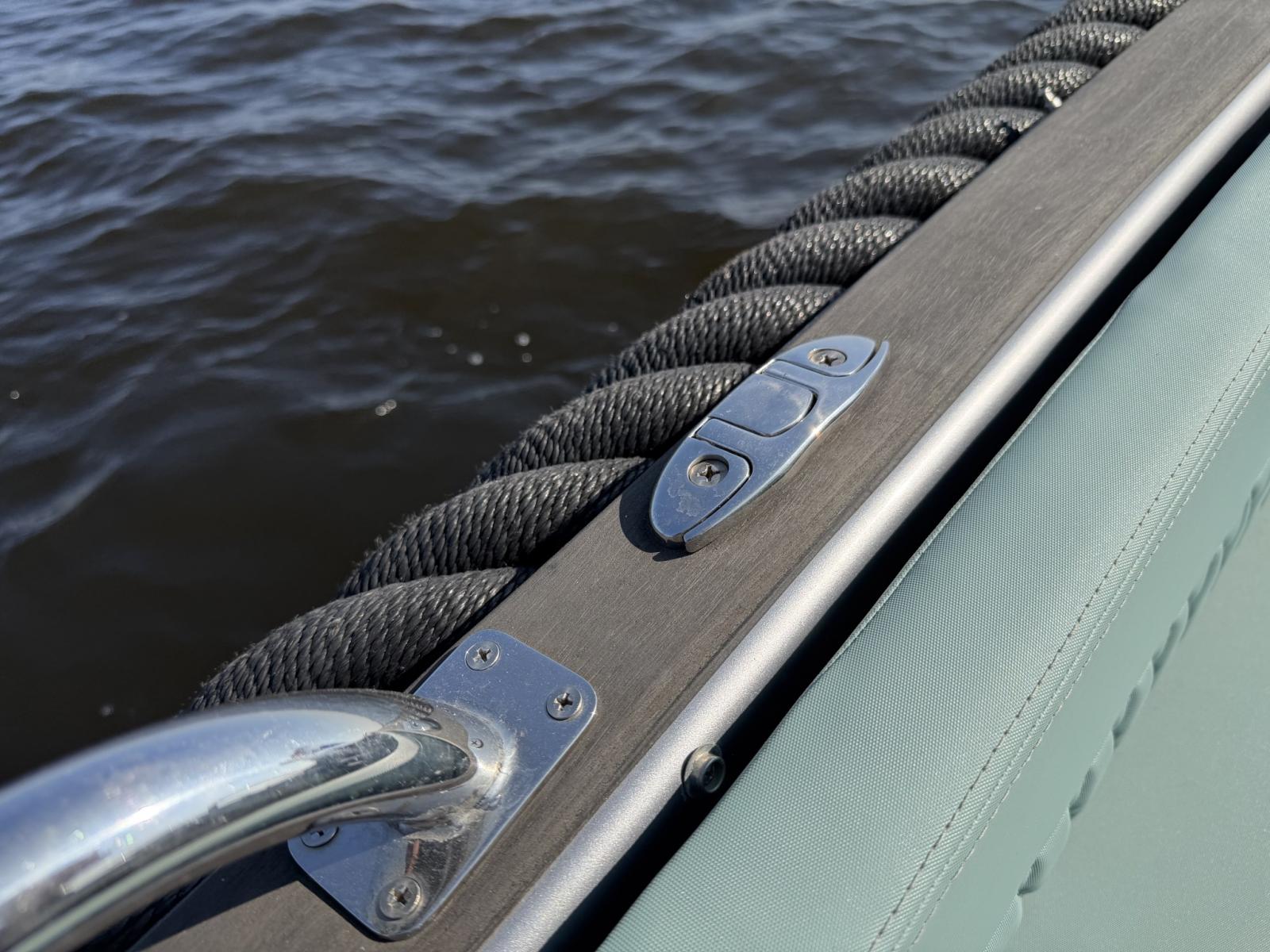 Cavo corrente di banchina, Colorazione speciale, Luci di cortesia, Parabordi, Ponte in teak, Pozzetto Teak, Presa 220V banchina, Scaletta da bagno, Tavolo pozzetto.