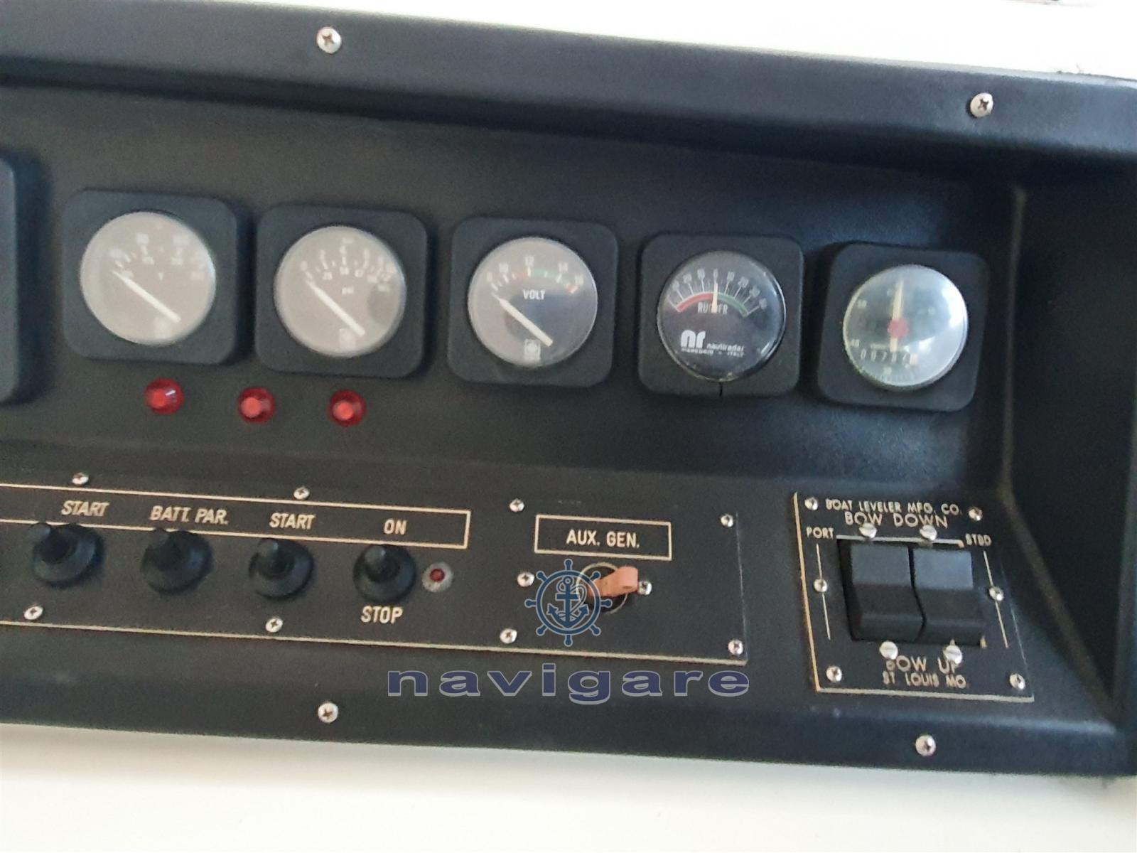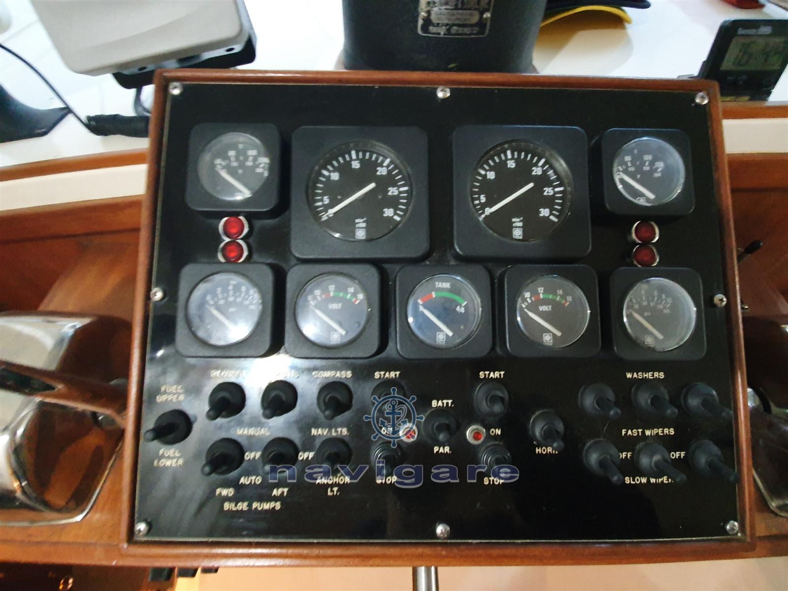 L'imbarcazione è il modello con doppia guida di serie. Interni completamente rivestiti in mogano seguendo il disegno originale e nell'occasione ricustruito in mogano il divano ad (L) Confezionato nuovo tavolo in mogano. Piano cucina: sostituzione piano cottura con fornelli in vetroceramica 2020,sostituzione frigo, montaggio TV.