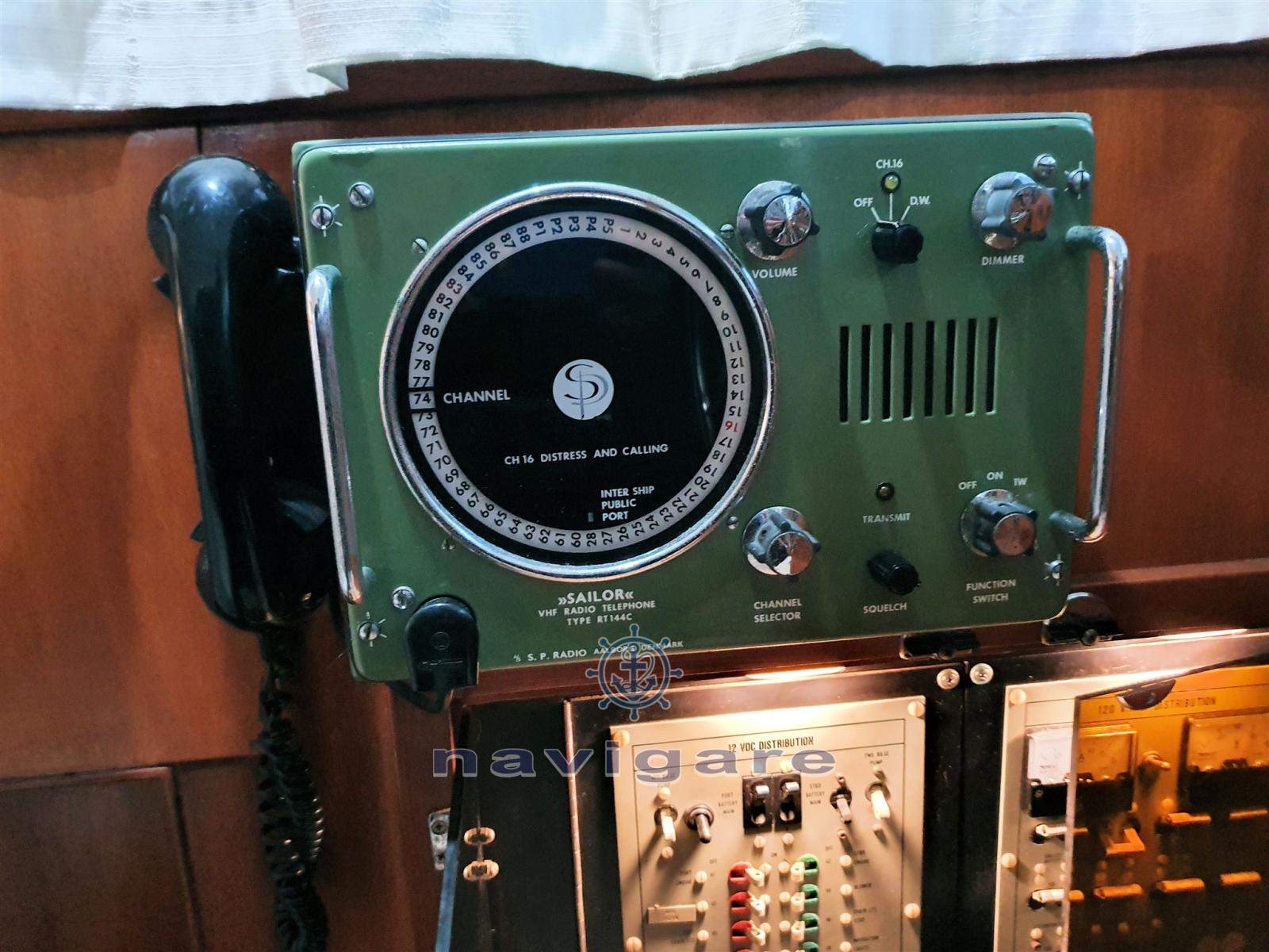Ecoscandaglio (Garmin echo map 50s), GPS (Geonav 6 Plus3), Pilota automatico (Originale dell'epoca, funzionante AP 3002 Autopilot della nautiradar Italy), 2 Radio VHF (Cobra marine per il fly e fantastico SAILOR radio telefono).