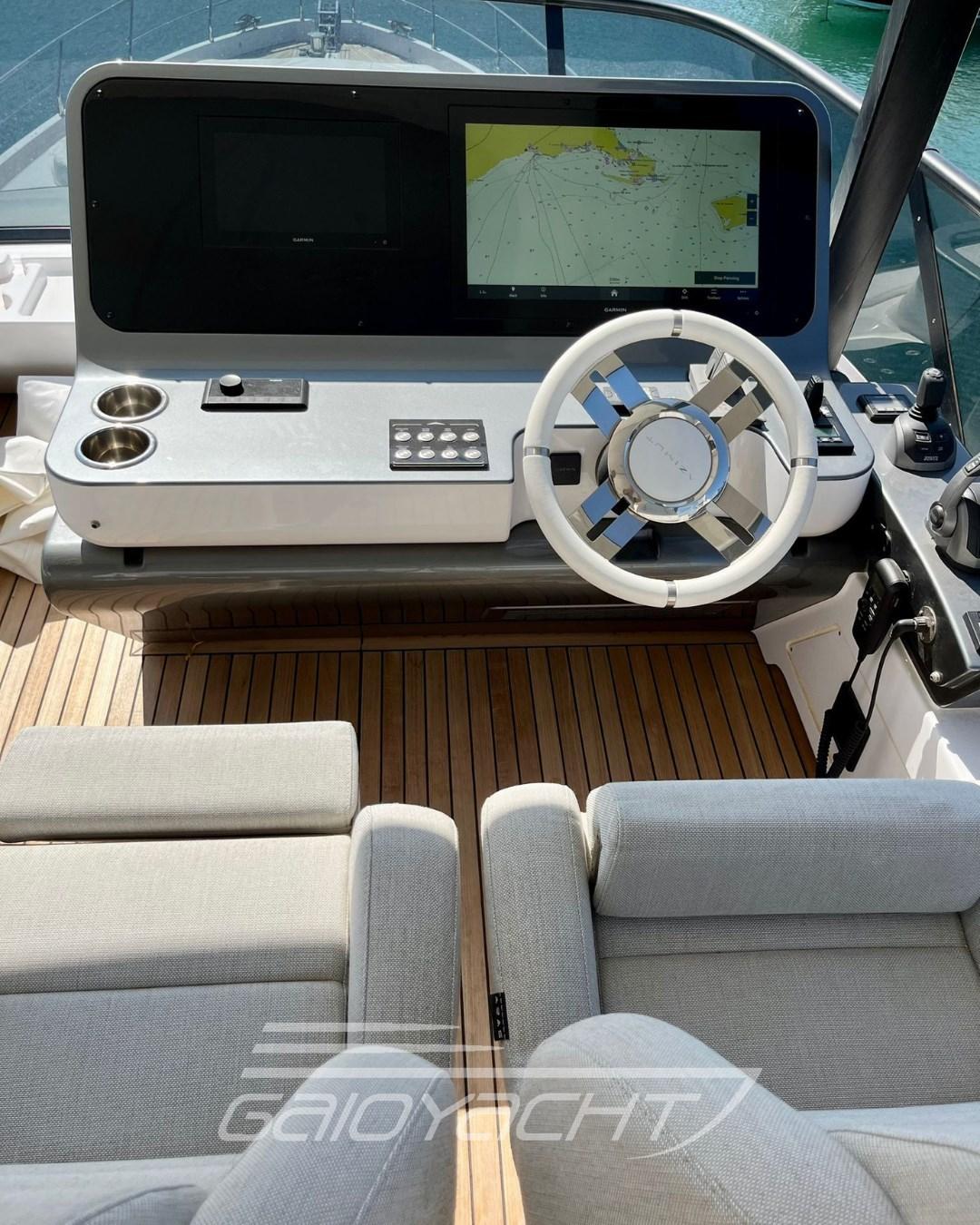 Tenda a rullo elettrica in pozzetto; Tavolo aggiuntivo di prua in teak; Top lavabo in quarzite in tutti i bagni; Pacchetto Garmin Gold; Sistema Volvo Interceptor; Filtro Racor per generatore; Predisposizione per desalinizzatore; Isolatore galvanico; Teak sul fly e prua.