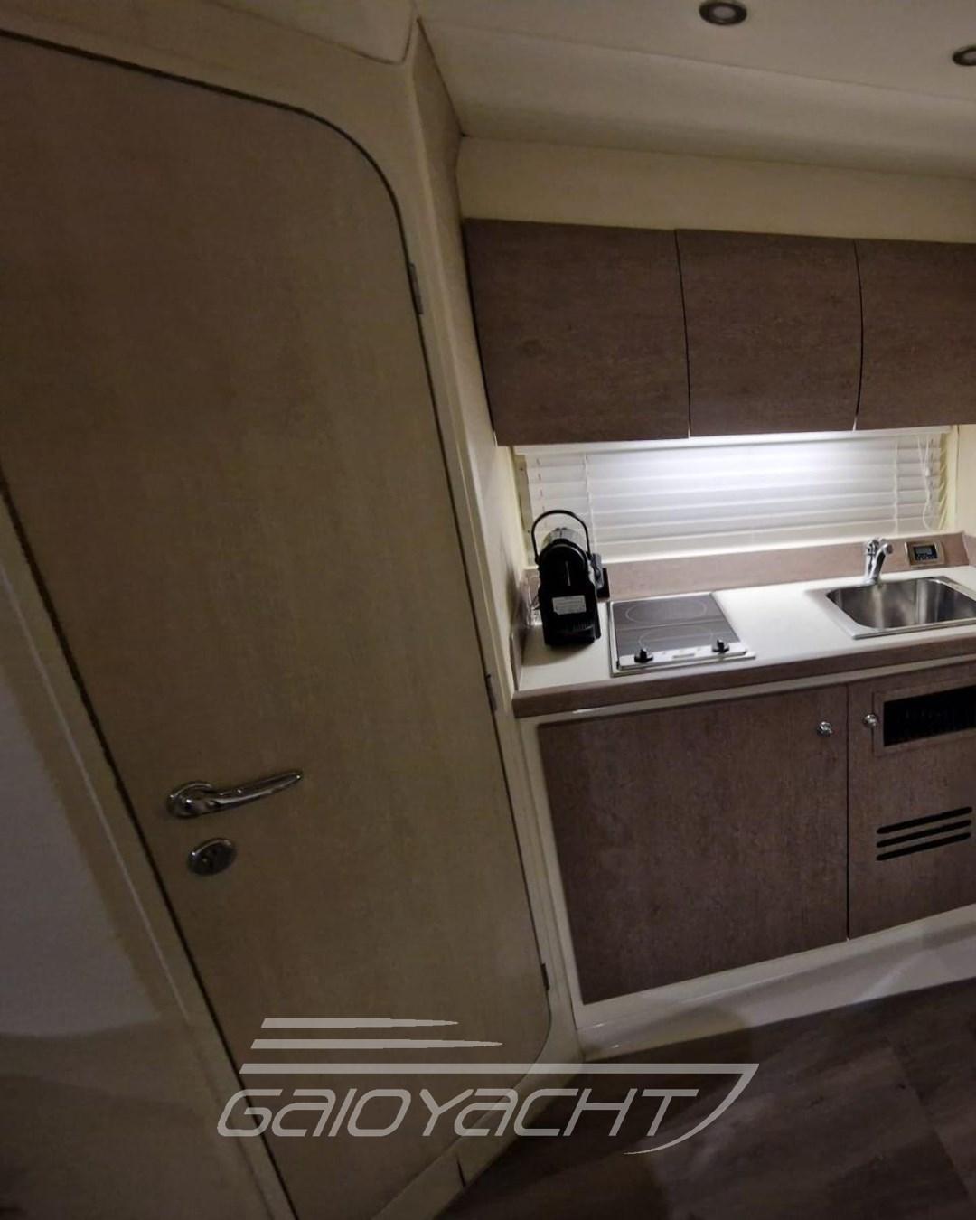 Flaps; Manette elettriche; Strumentazione di bordo Volvo Penta completa; Angolo cottura ad induzione esterno (pozzetto) a due fuochi e comodo lavabo; Mobile cucina esterno (pozzetto); Doppio frigo; Piastra cucina dinette ad induzione con due fuochi; Impianto TV presente nel pozzetto e con TV in camera armatore; Radio Hi-Fi.