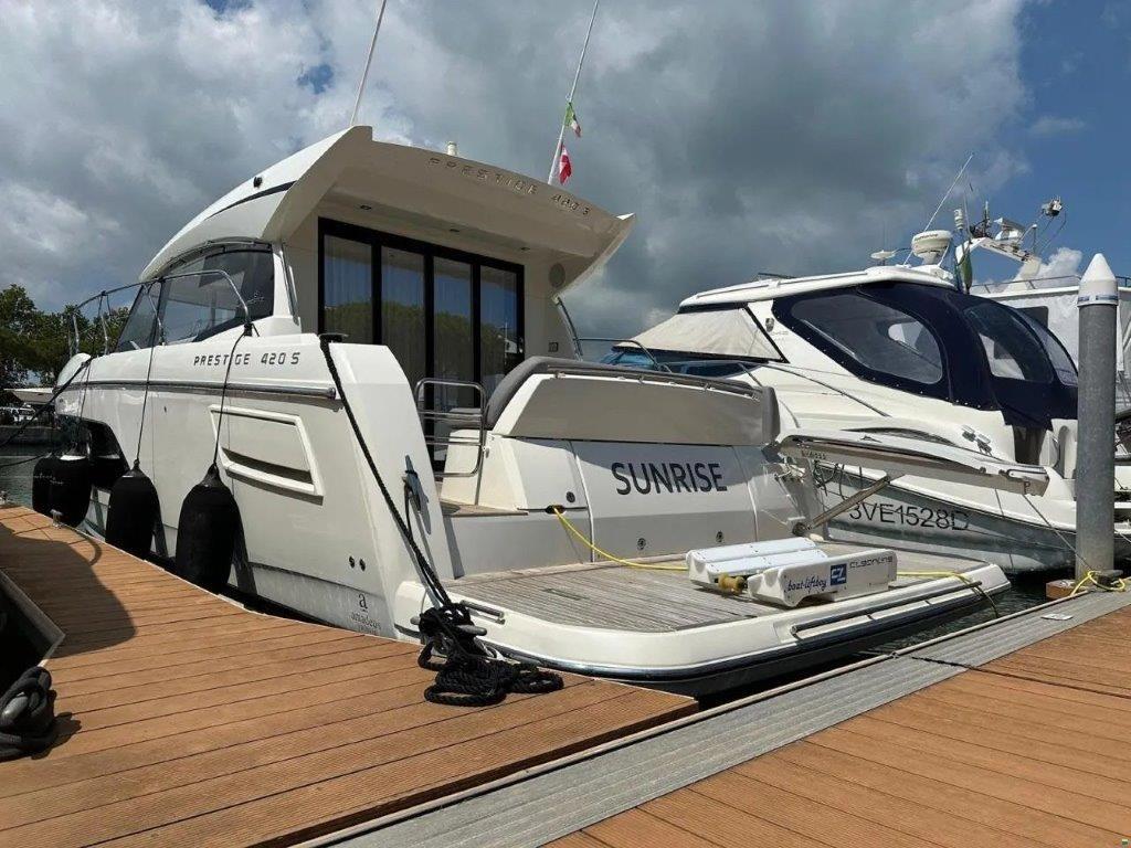 Corrimano, Corrimano di sicurezza, Doccia esterna, Flap elettrici, Garage per tender, Hard top, Passerella, Porta laterale, Presa acqua banchina, Salpa Ancore Elettrico, Selle per Tender, Tavolo pozzetto, Tromba.